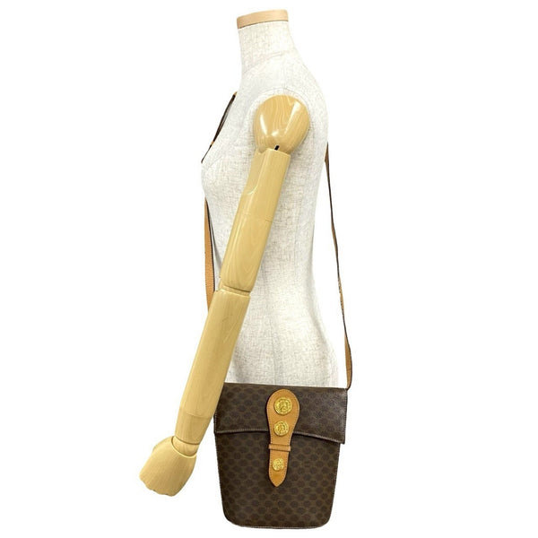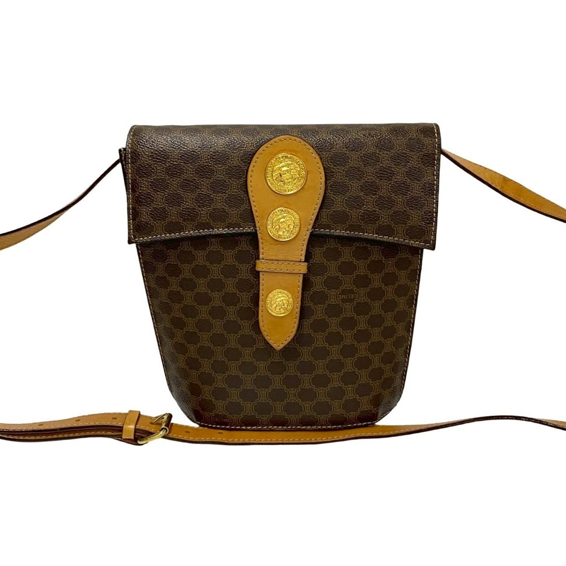 CELINE Macadam Blason Triomphe Medal and Coin Motif Leather Shoulder Bag, Brown, 21720