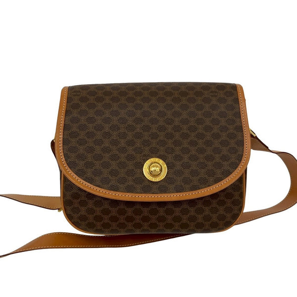 CELINE Macadam Blason Triomphe Pattern Star Ball Logo Hardware Leather Shoulder Bag Pochette Brown 92941
