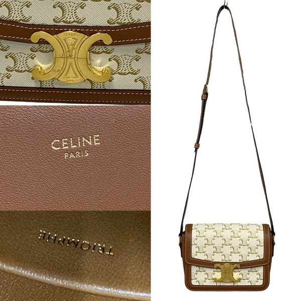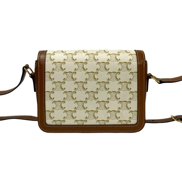 CELINE Teen Triomphe Logo Hardware Leather Shoulder Bag Pochette White Brown 25243
