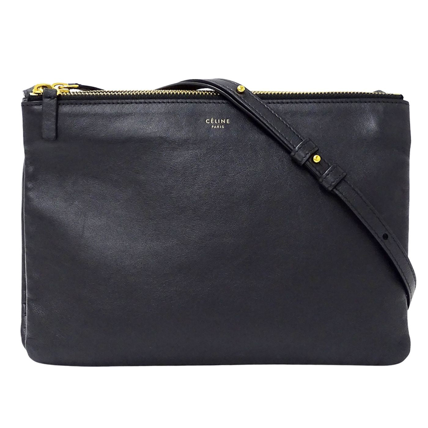 Celine Trio Large Leather Shoulder Bag, Black, Women\'s, Crossbody