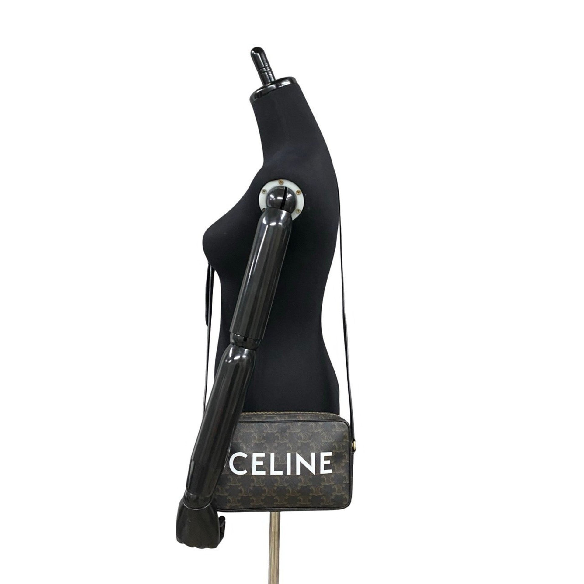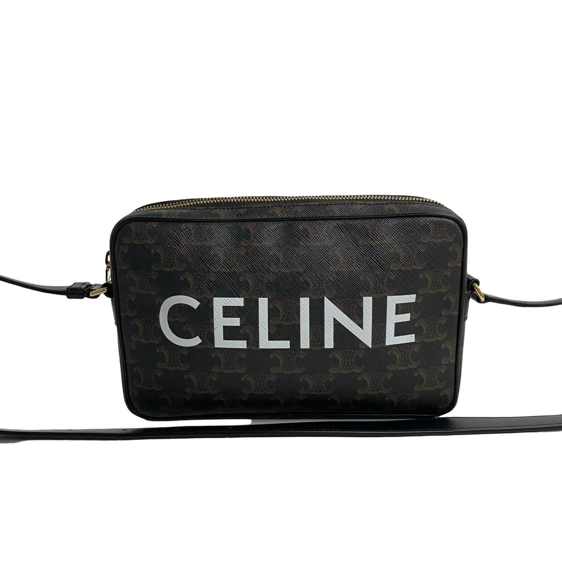 CELINE Triomphe Messenger Medium Leather Mini Shoulder Bag Pochette Black 33540