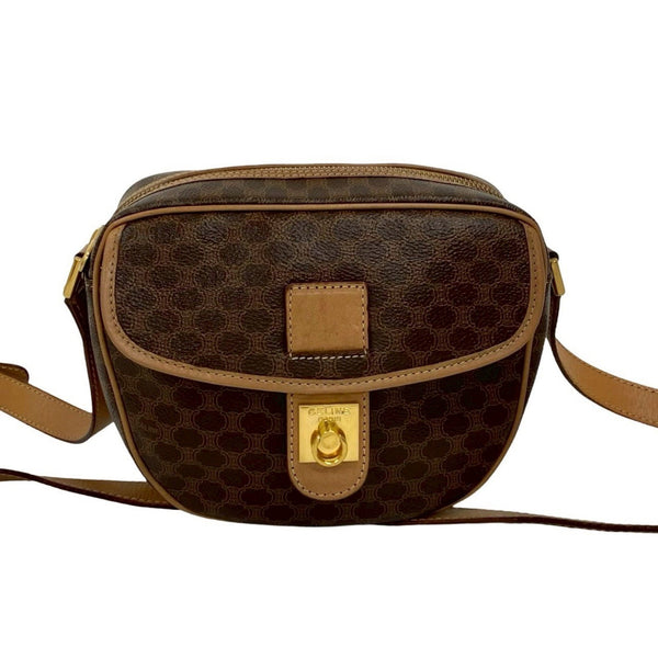 CELINE Vintage Logo Ring Hardware Leather Shoulder Bag Pochette Sacoche Brown 18168