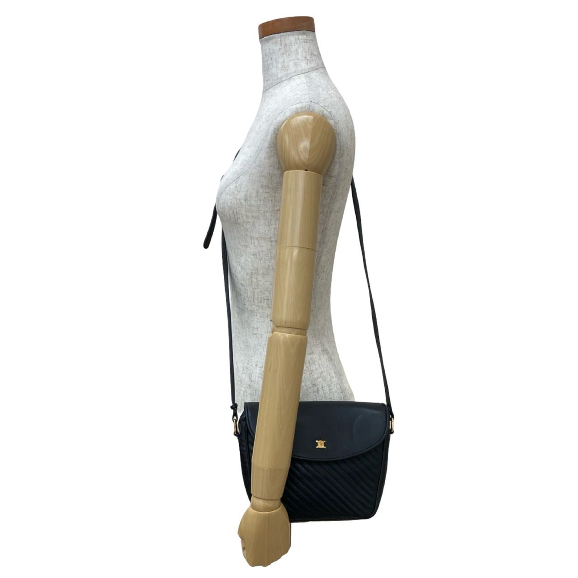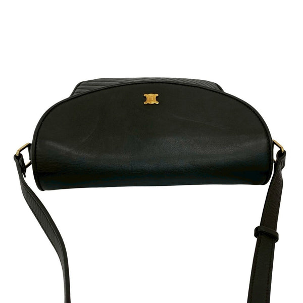 CELINE Vintage Triomphe Logo Hardware Leather Shoulder Bag/Pochette/Sacoche Black 24259