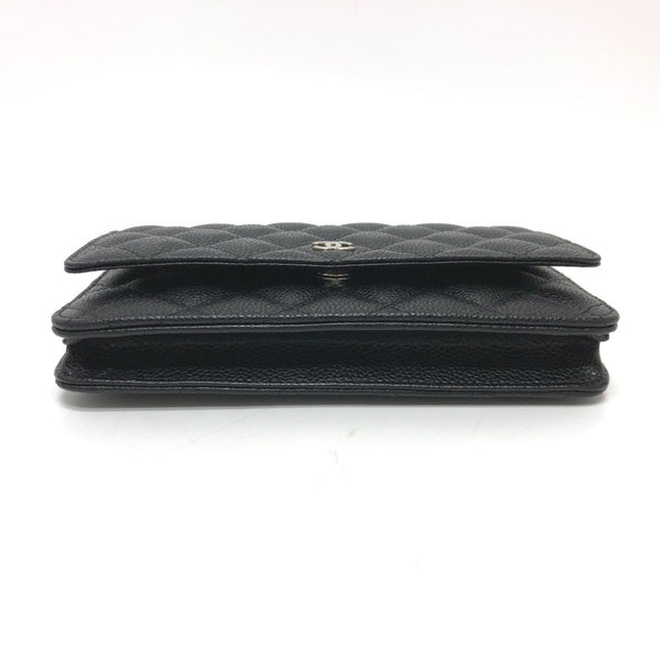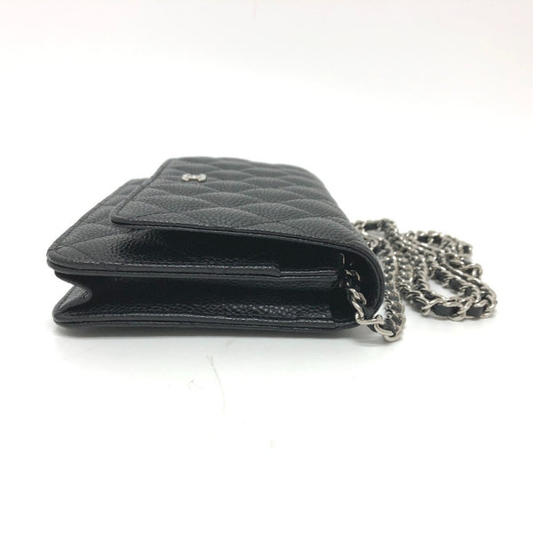 CHANEL AP0250 Matelasse Coco Mark Classic Chain Wallet Shoulder Bag Caviar Skin Women\'s Silver Hardware Black