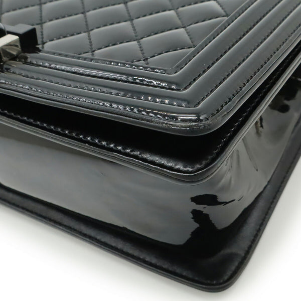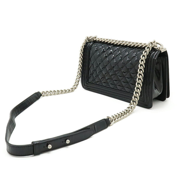 CHANEL Boy Chanel Matelasse Coco Mark Chain Shoulder Bag in Black Enamel A67086