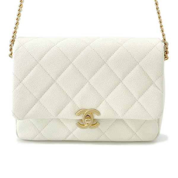 Chanel chain shoulder bag, Matelasse, Coco Mark, caviar skin, white