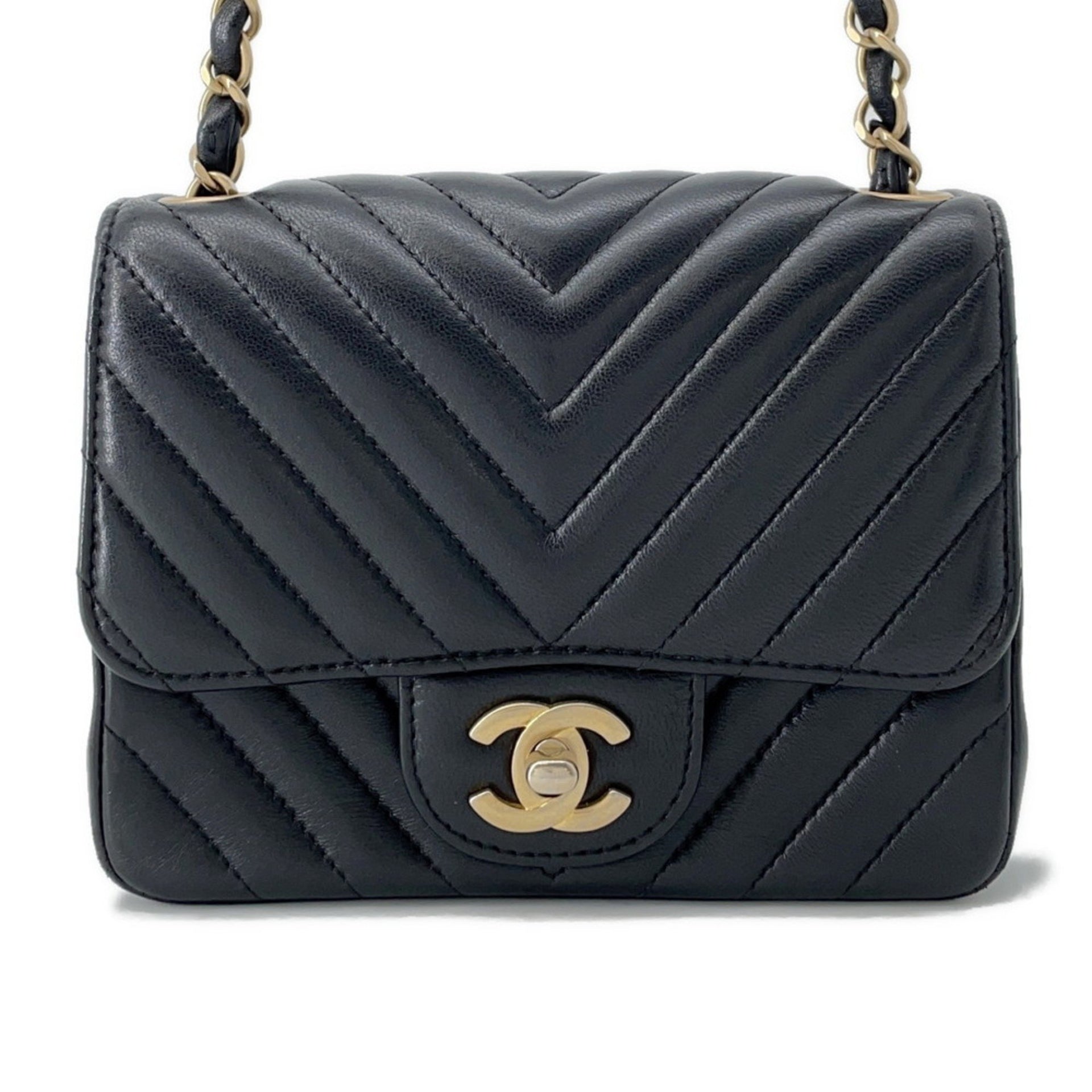 Chanel Chain Shoulder Bag with Chevron V-Stitching and Lambskin Leather, A35200, Black