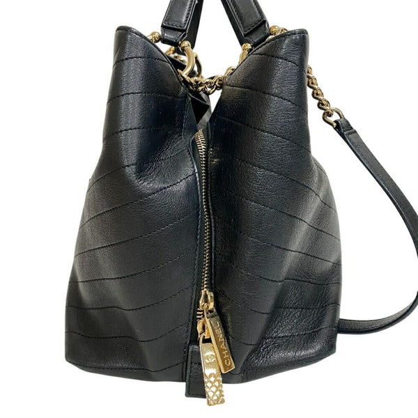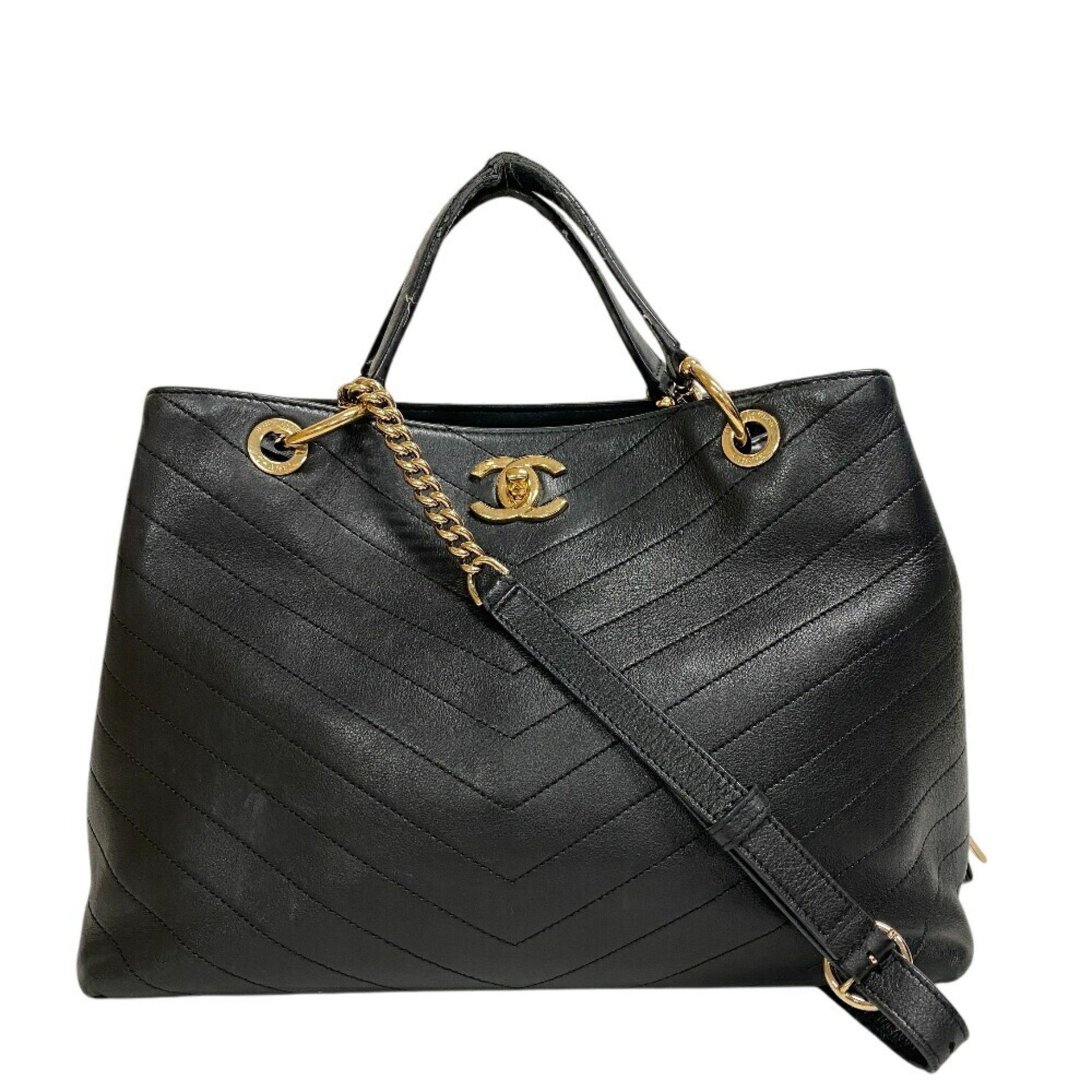CHANEL Chevron V-Stitch Chain Hand Shoulder Bag, Women\'s, Black