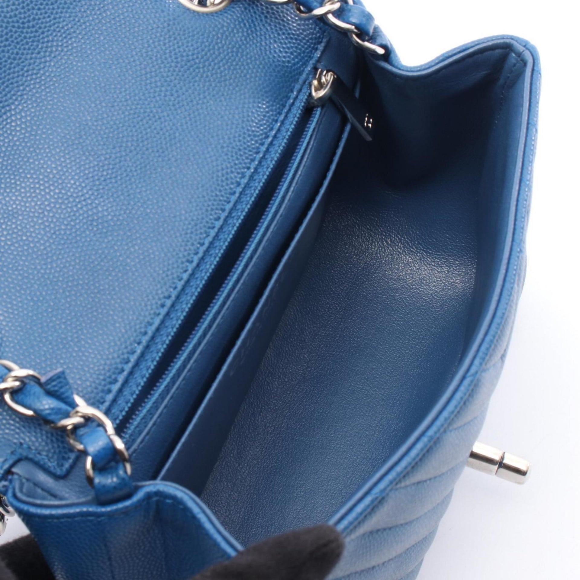 CHANEL Chevron V-Stitch Shoulder Bag in Calfskin Leather, Blue, Women\'s, A35200