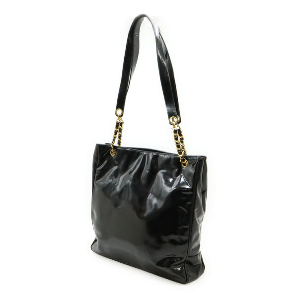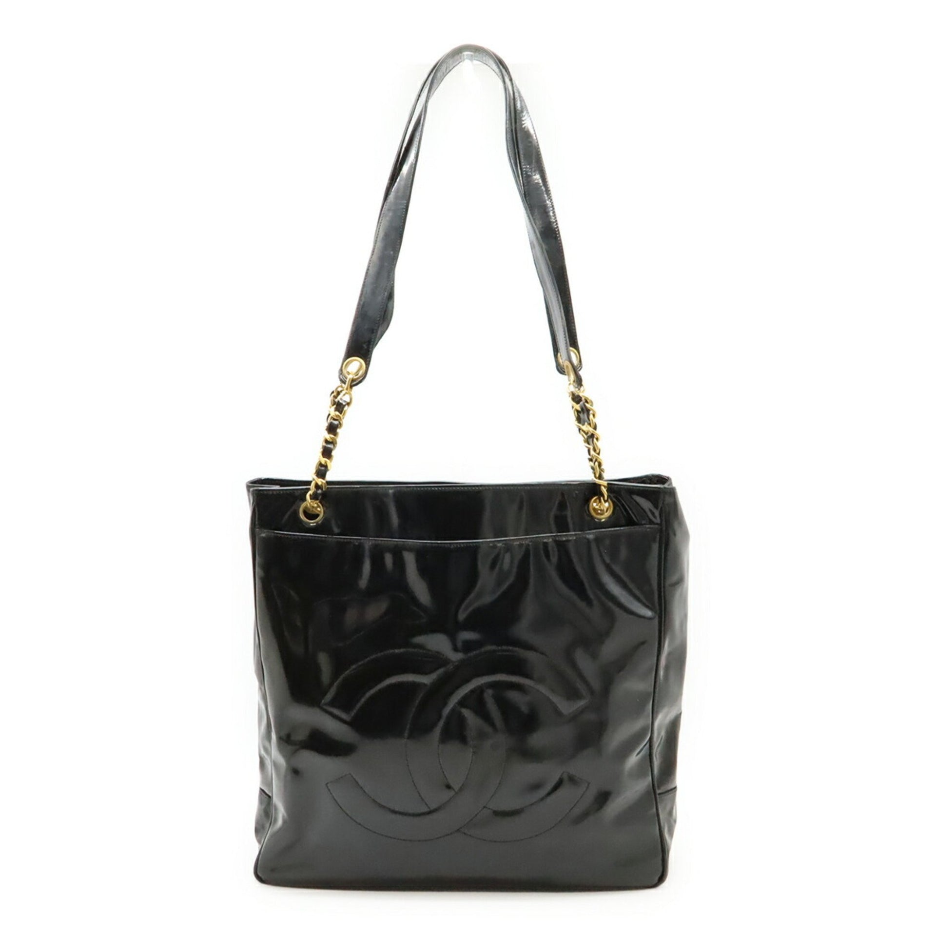 CHANEL Coco Mark Chain Shoulder Bag, Tote Enamel, Patent Leather, Black, A05464