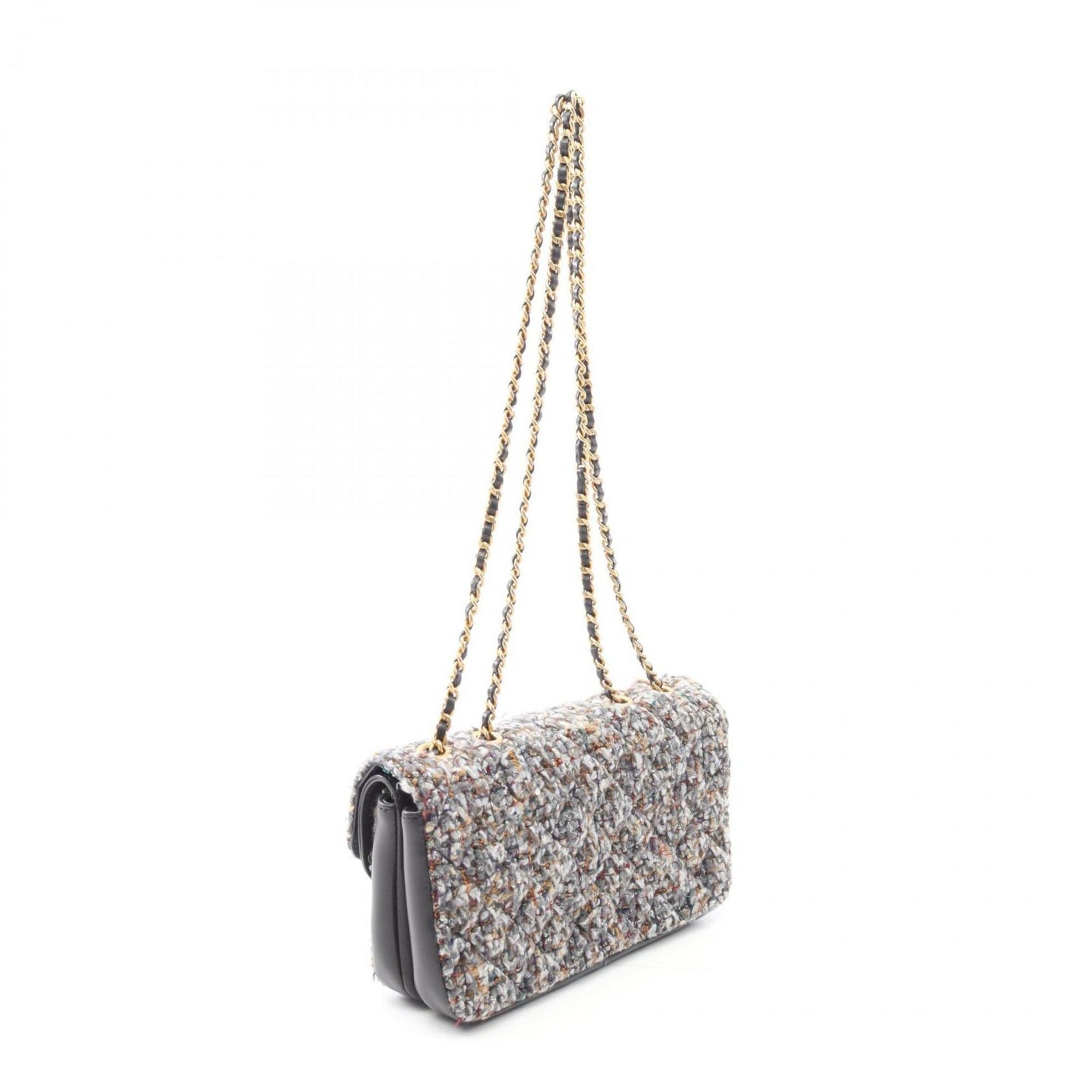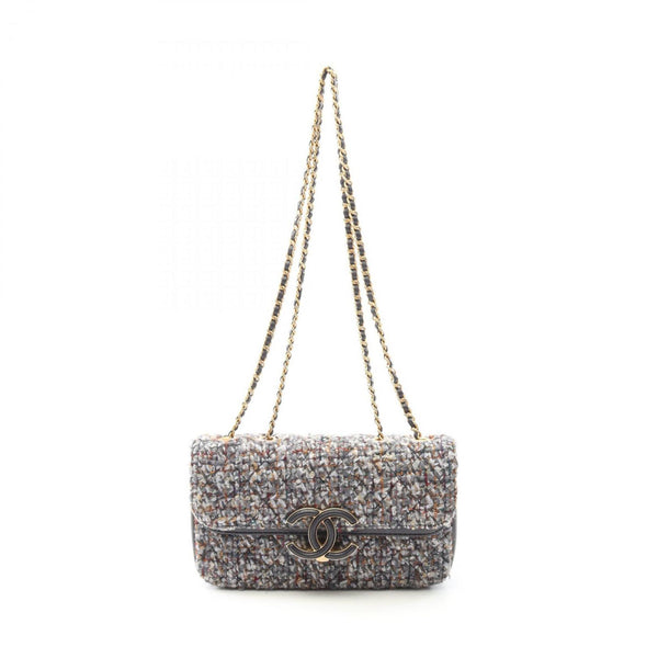 Chanel Coco Mark Shoulder Bag, Fabric Leather, Women\'s, Gray