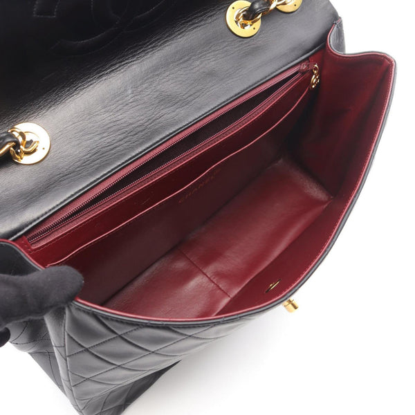 CHANEL Deca Matelasse 34 Single Flap Shoulder Bag in Lambskin Leather, Black