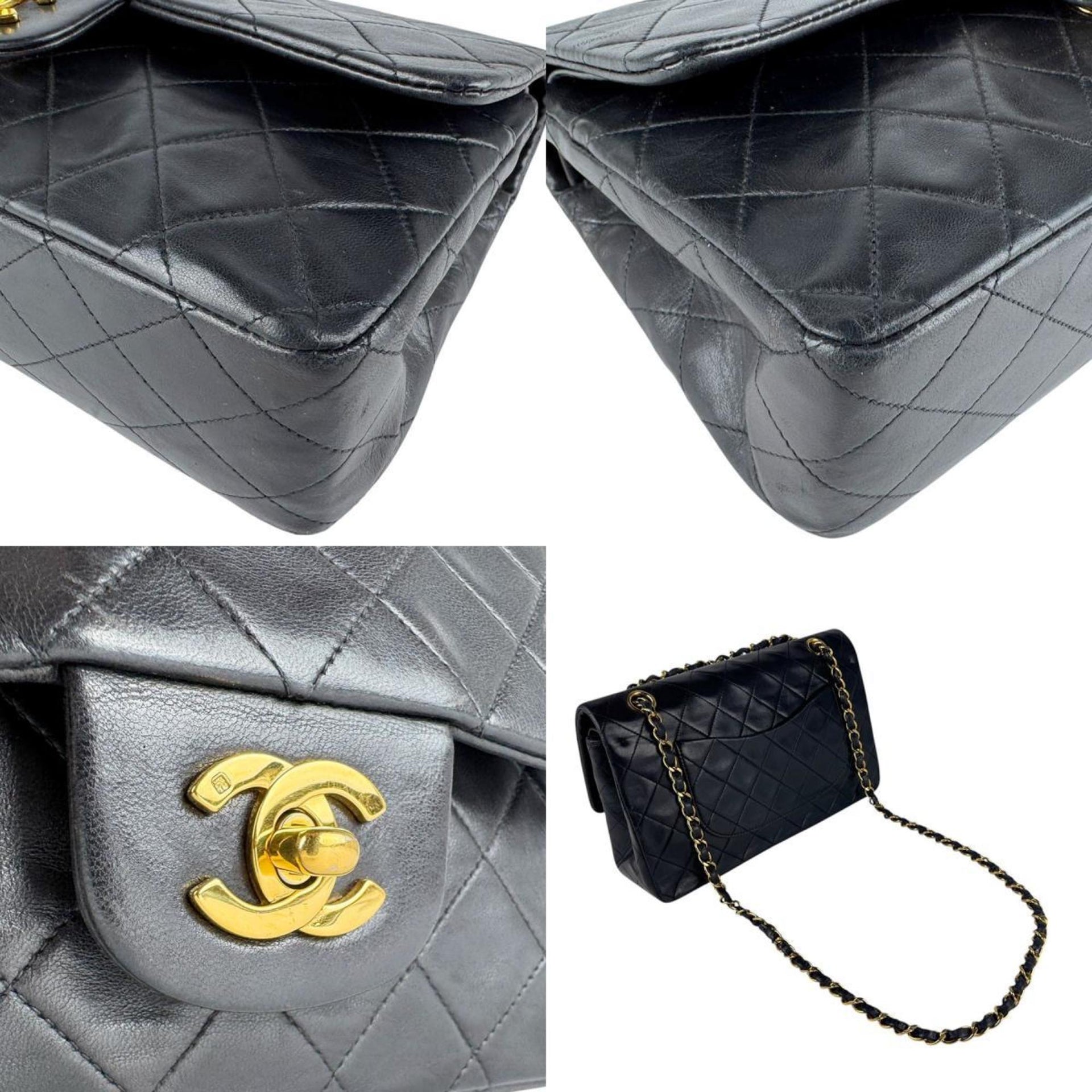 CHANEL Double Flap Matelasse Shoulder Bag in Lambskin, Black and Gold, Women\'s, z7008