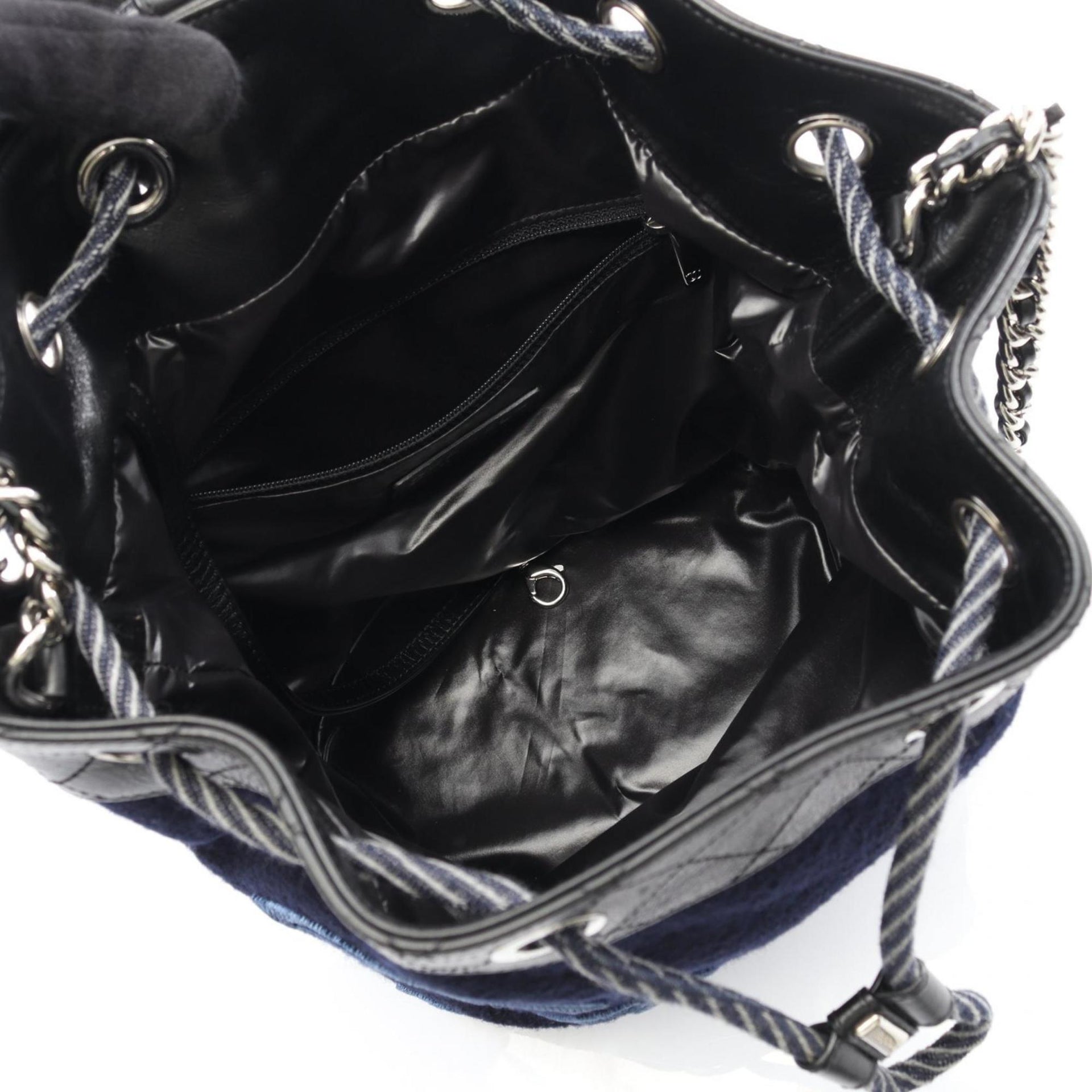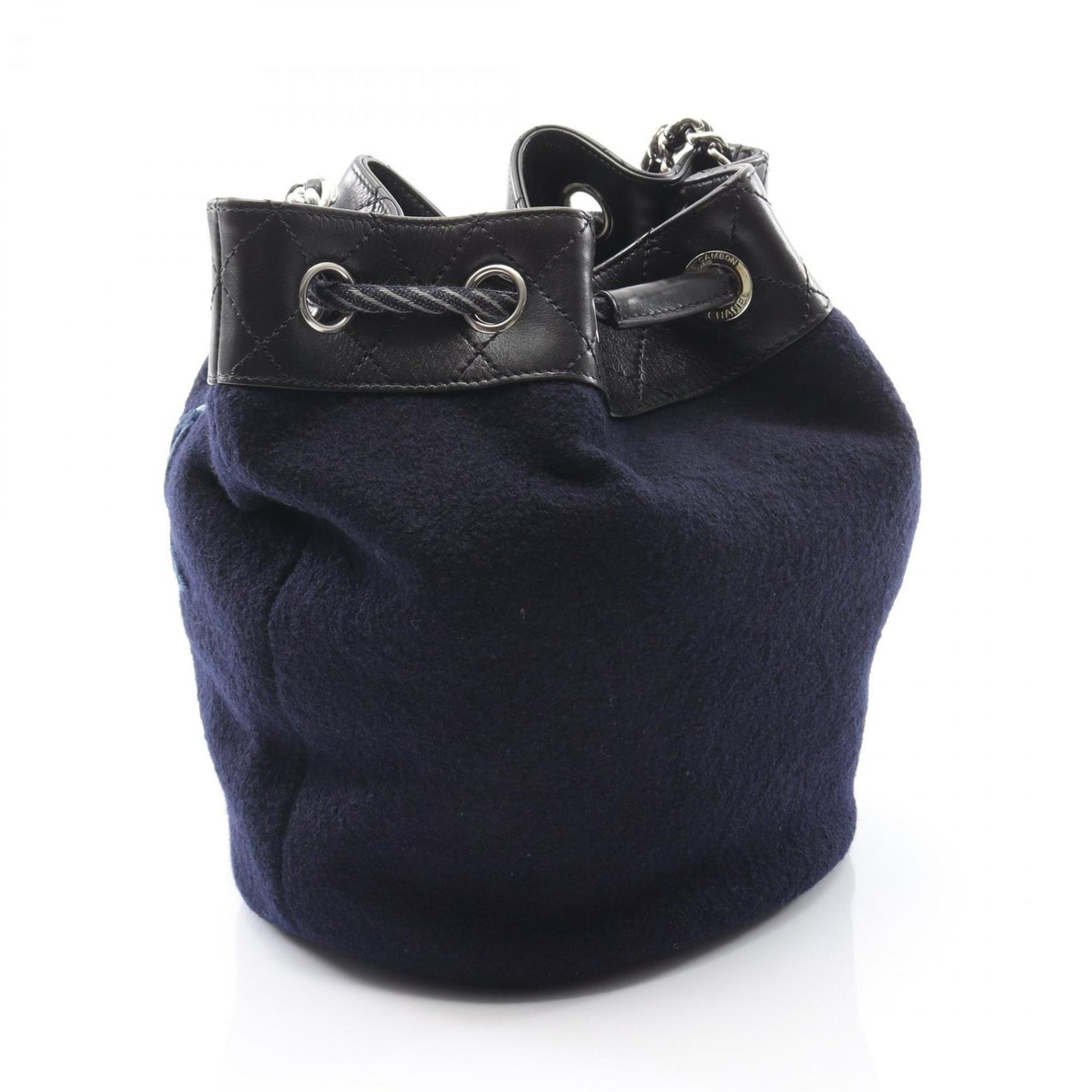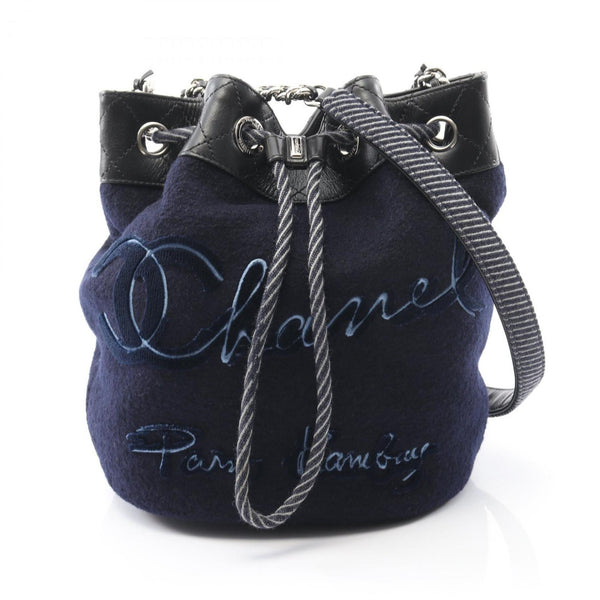 CHANEL Embroidered Shoulder Bag in Wool and Leather, Navy Black, A57540