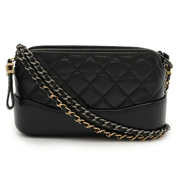 CHANEL Gabrielle de Chanel Matelasse Chain Clutch/Shoulder Bag/Pochette in Black Calfskin A94505
