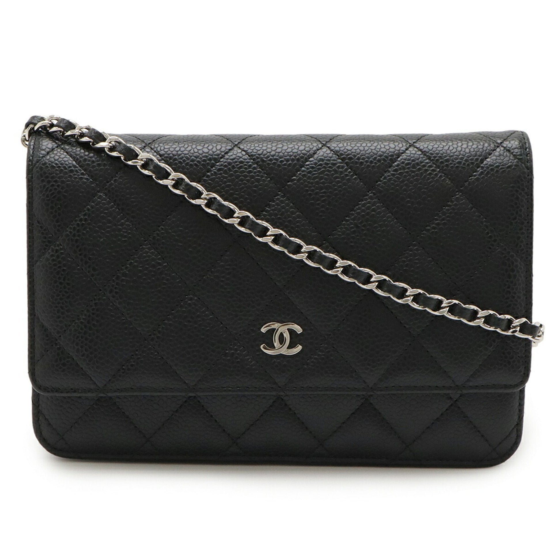 CHANEL Matelasse Chain Wallet Shoulder Bag Pochette in Black Caviar Leather A33814