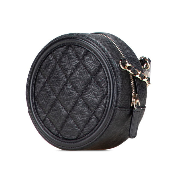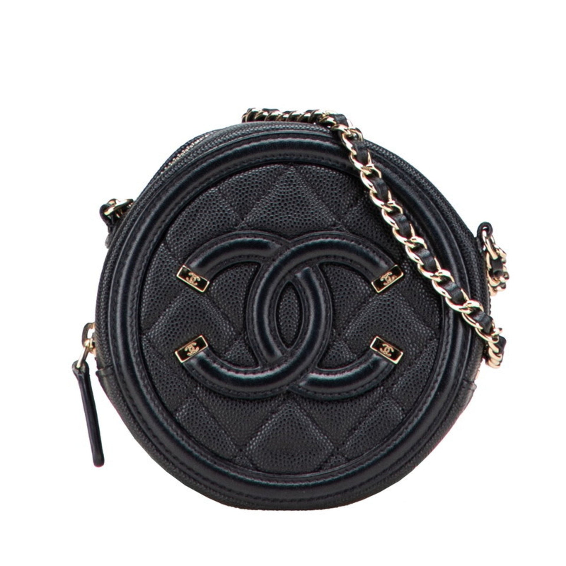 CHANEL Matelasse Coco Mark CC Filigree Chain Shoulder Bag AB0365 Black Caviar Leather Women\'s