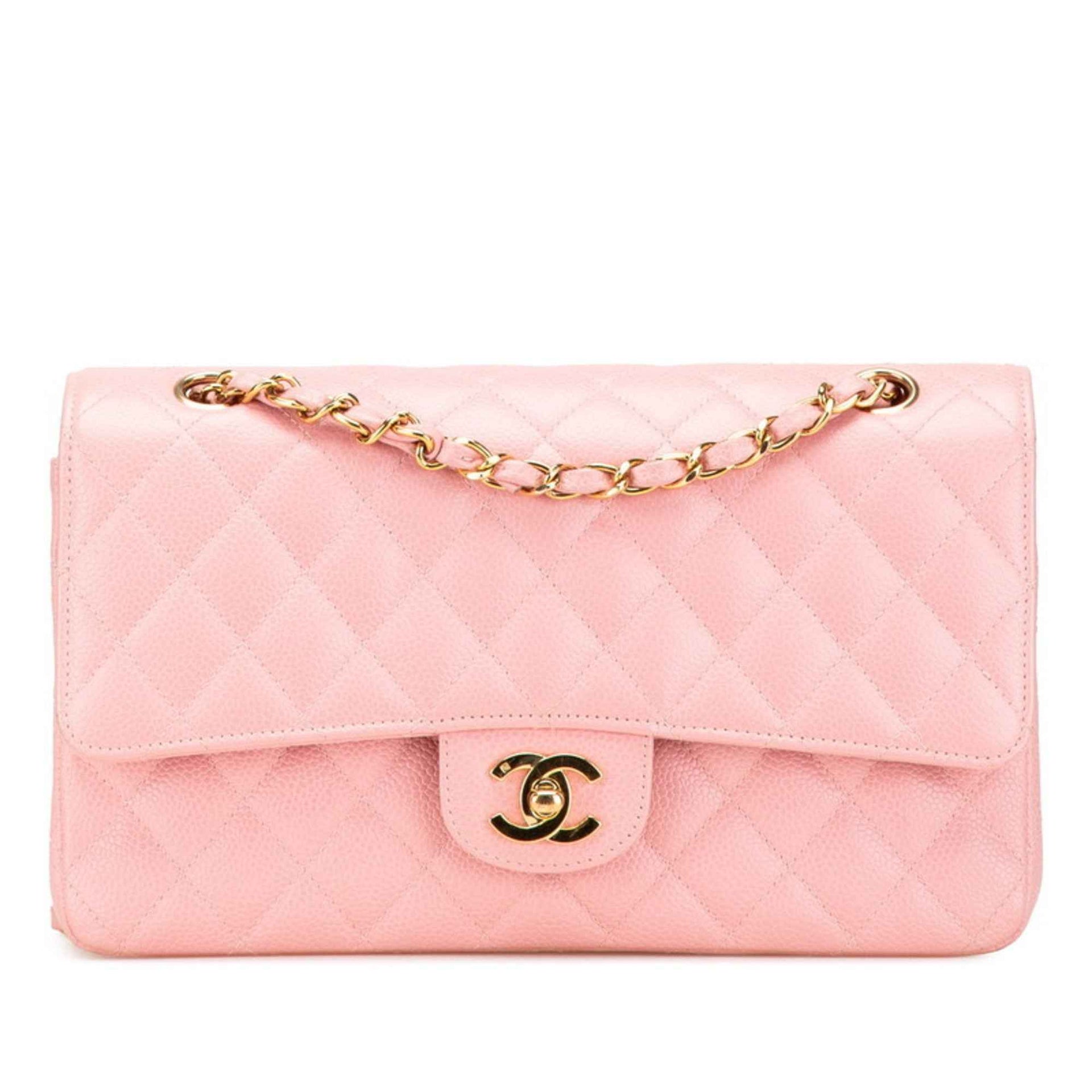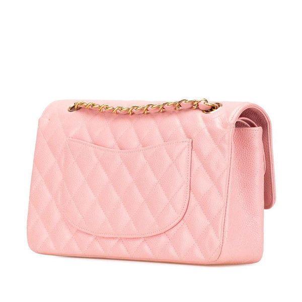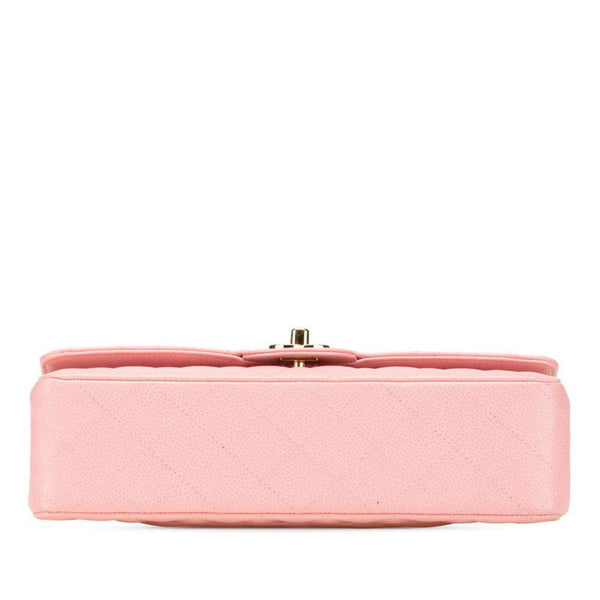 CHANEL Matelasse Coco Mark Double Flap Chain Shoulder Bag Handbag Pink Caviar Skin Women\'s
