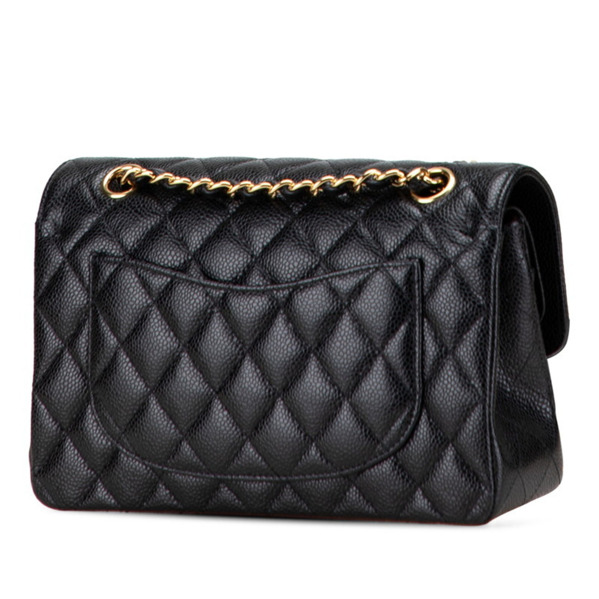 CHANEL Matelasse Coco Mark Double Flap Chain Shoulder Bag in Black with Gold Hardware and Caviar Leather, Women\'s