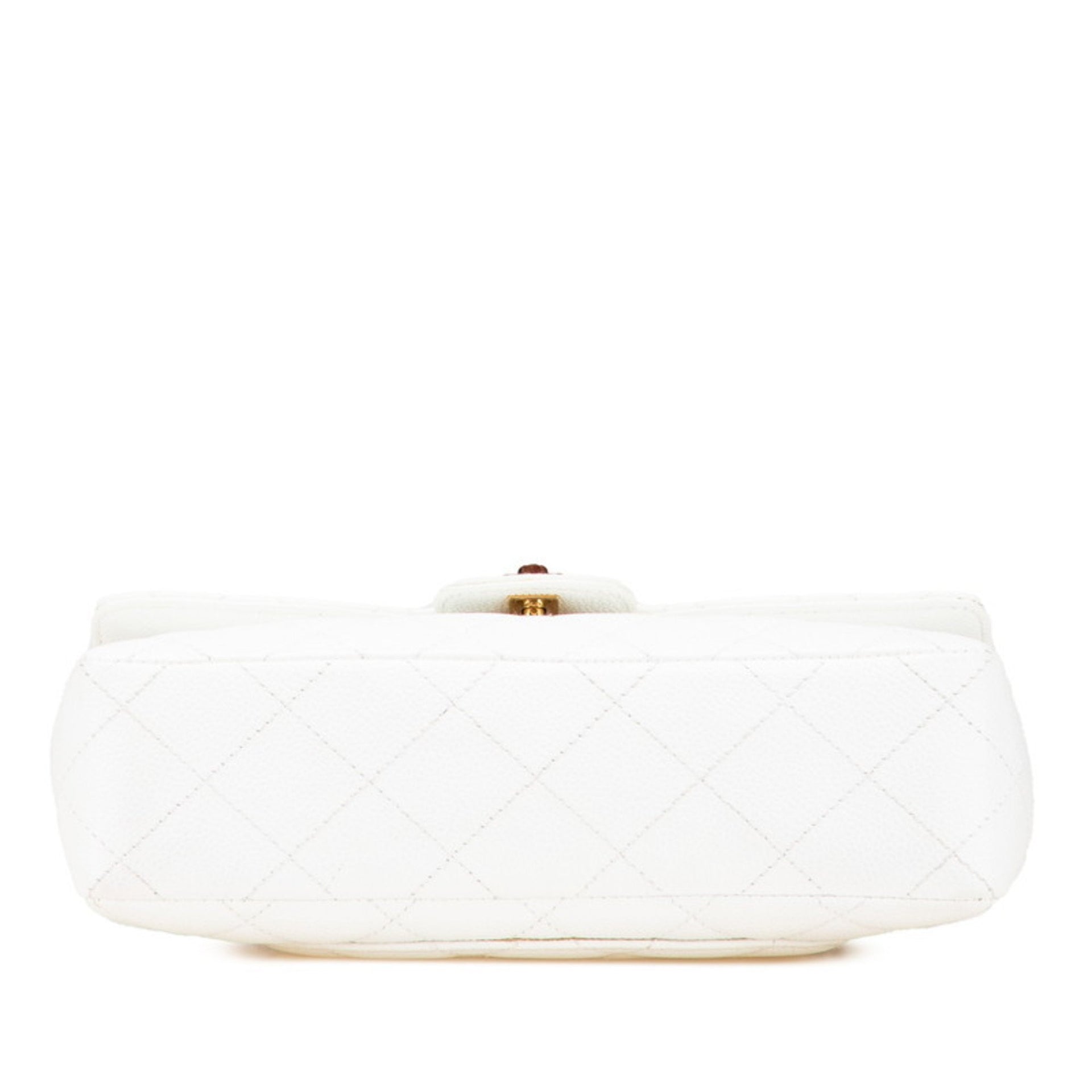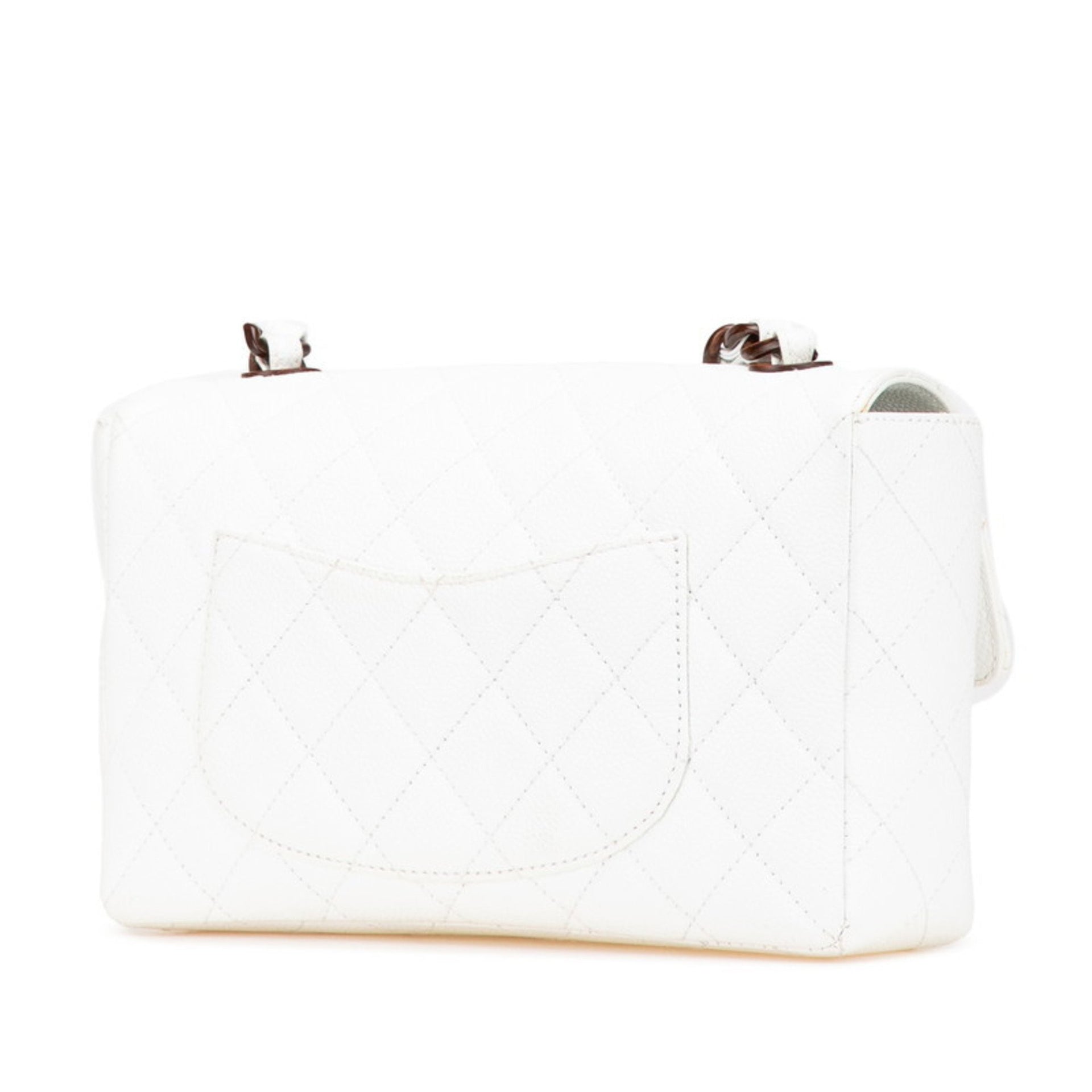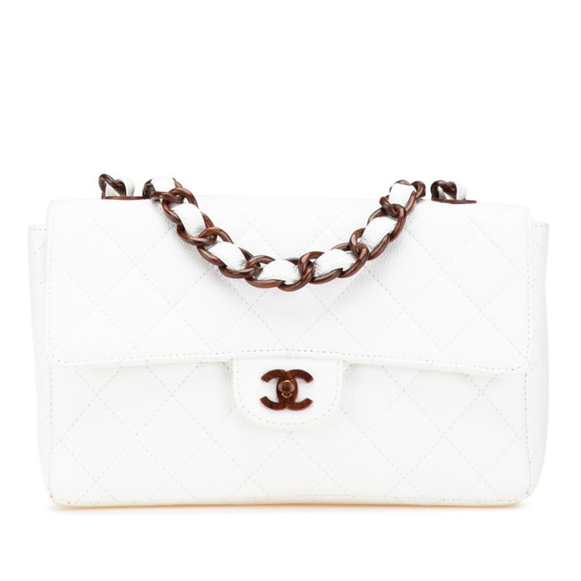 CHANEL Matelasse Coco Mark Wood Chain Shoulder Bag in White and Brown Caviar Skin for Women