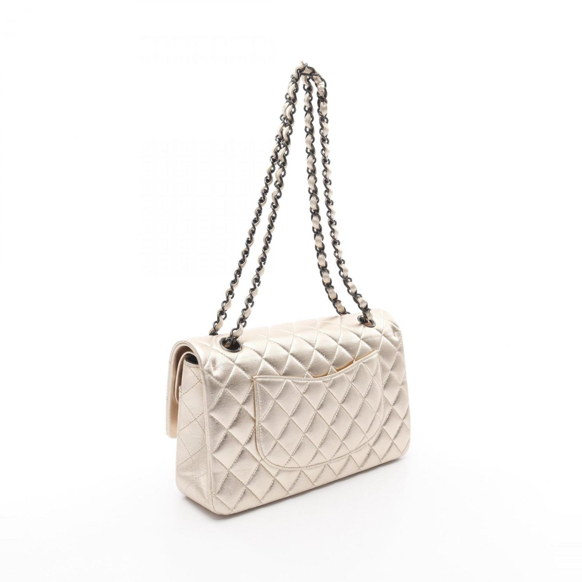 CHANEL Matelasse Double Flap Shoulder Bag in Lambskin Leather, Gold