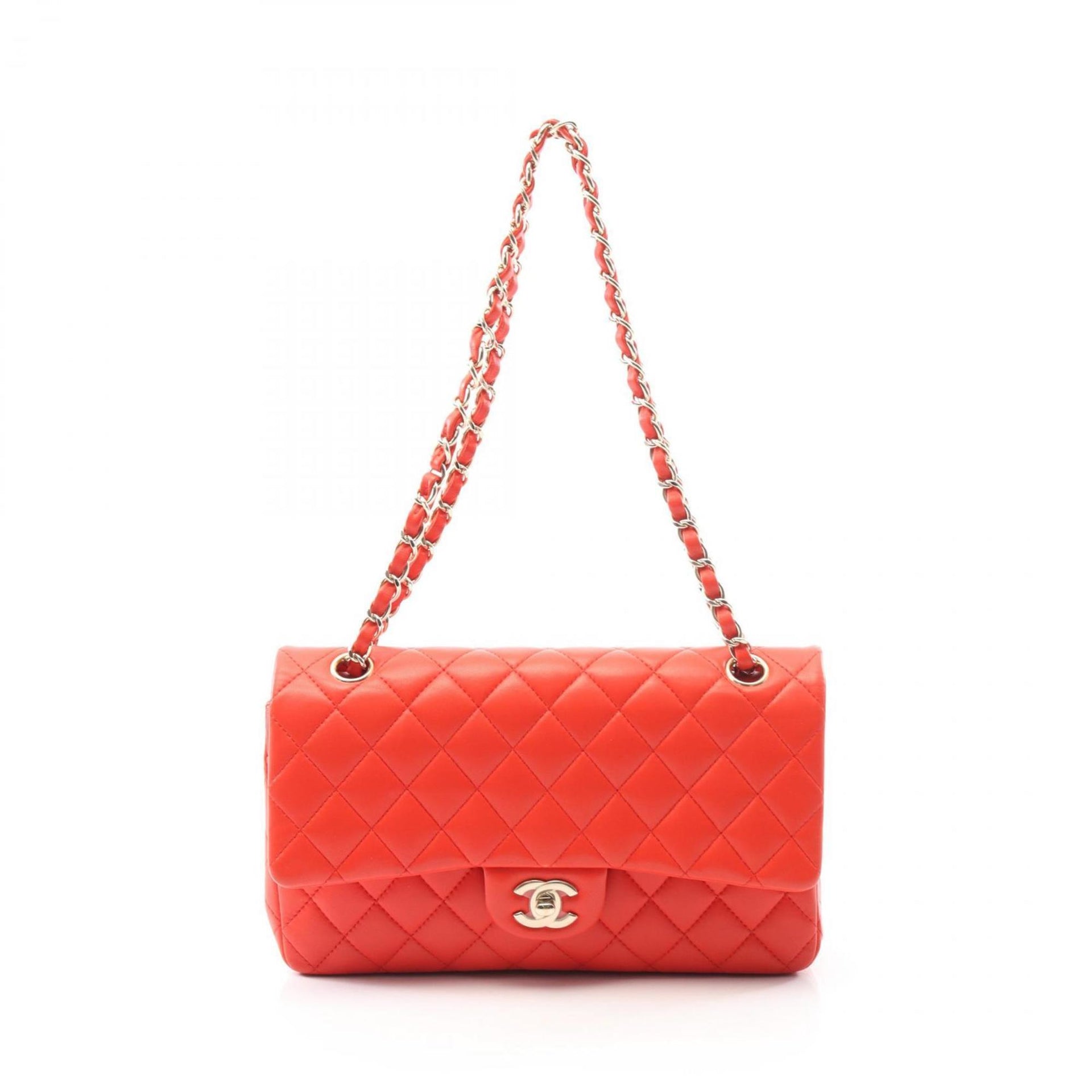 CHANEL Matelasse Double Flap Shoulder Bag in Lambskin Leather, Red