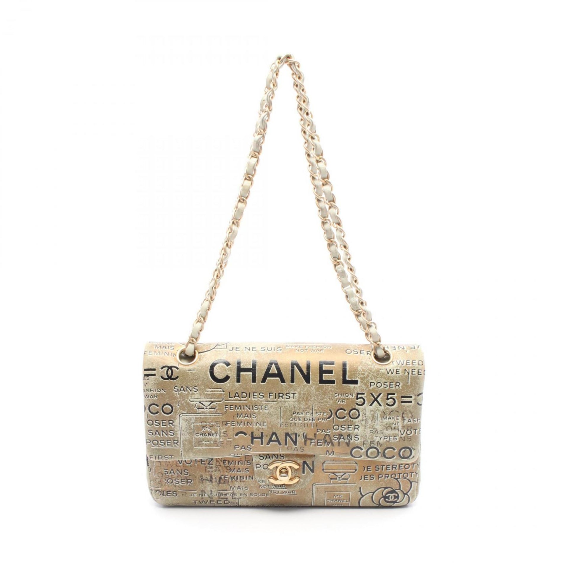 CHANEL Matelasse Double Flap Shoulder Bag, Leather, Women\'s, Brown and Green, A01112