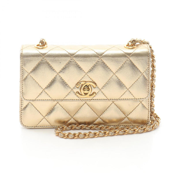 CHANEL Mini Matelasse Shoulder Bag, Lambskin Leather, Women\'s, Gold