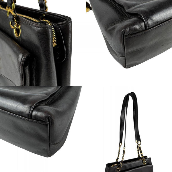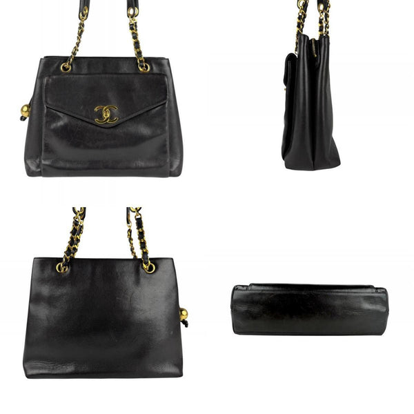 CHANEL Shoulder Bag Leather Metal Black Gold Women\'s Z6748