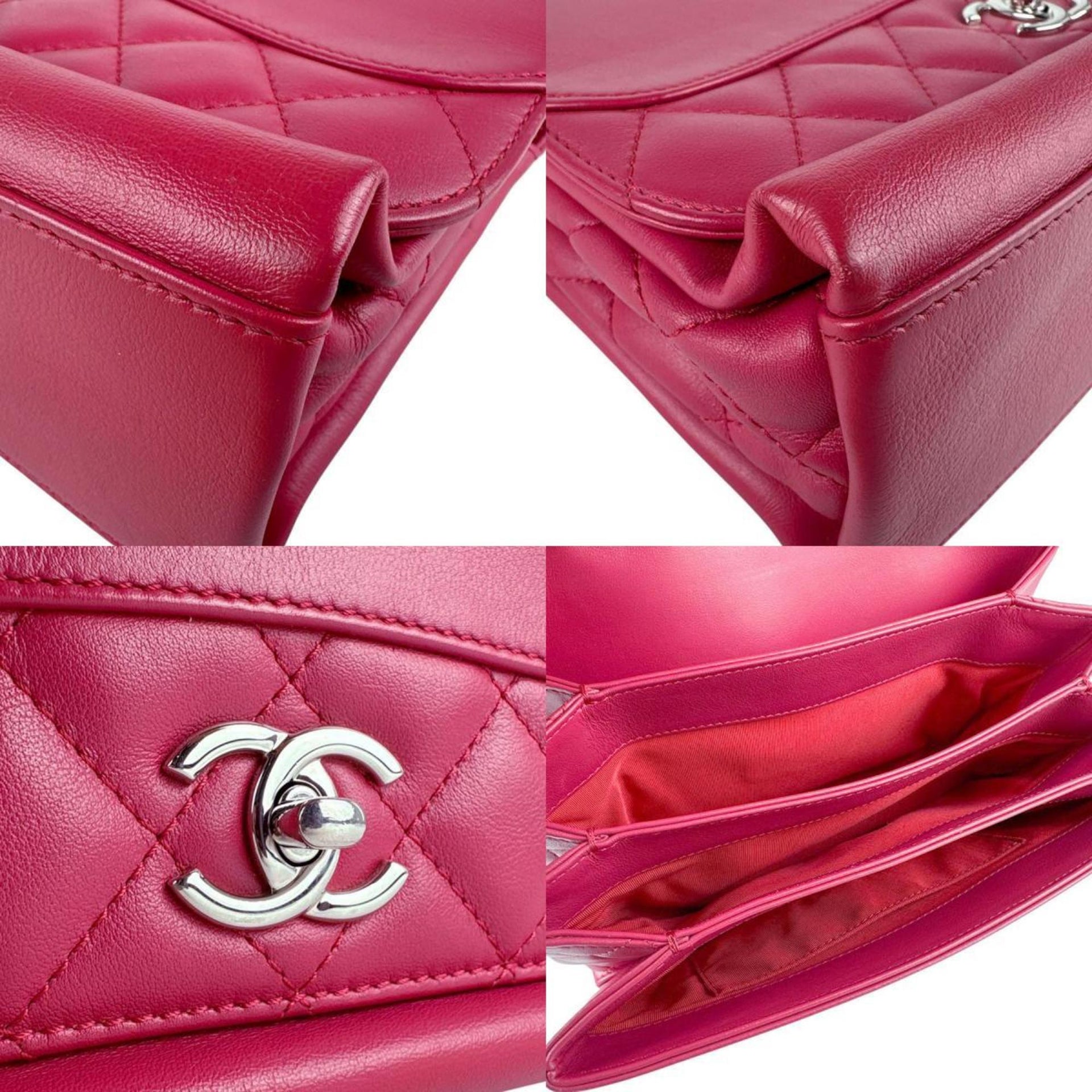 CHANEL Shoulder Bag Leather Metal Pink Red Silver Women\'s z6930