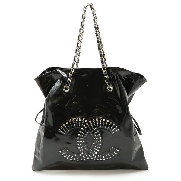 CHANEL Strass CC Bonbon Chain Tote with Coco Mark, Shoulder Bag, Enamel, Black, 7741