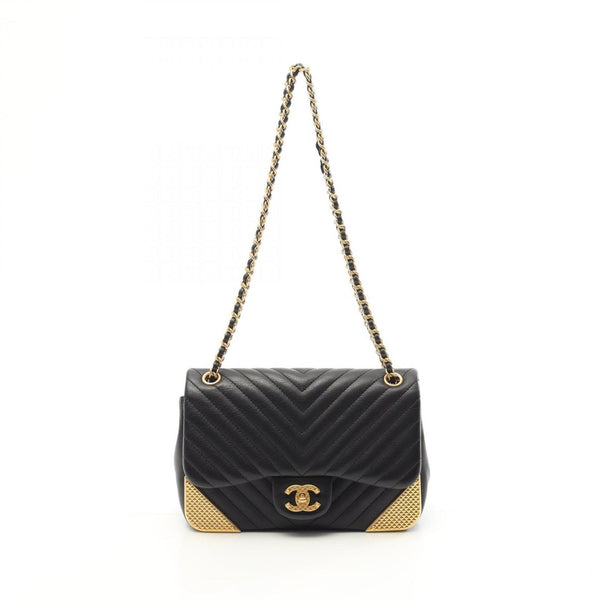 Chanel V-stitch shoulder bag in lambskin leather, black, A94500