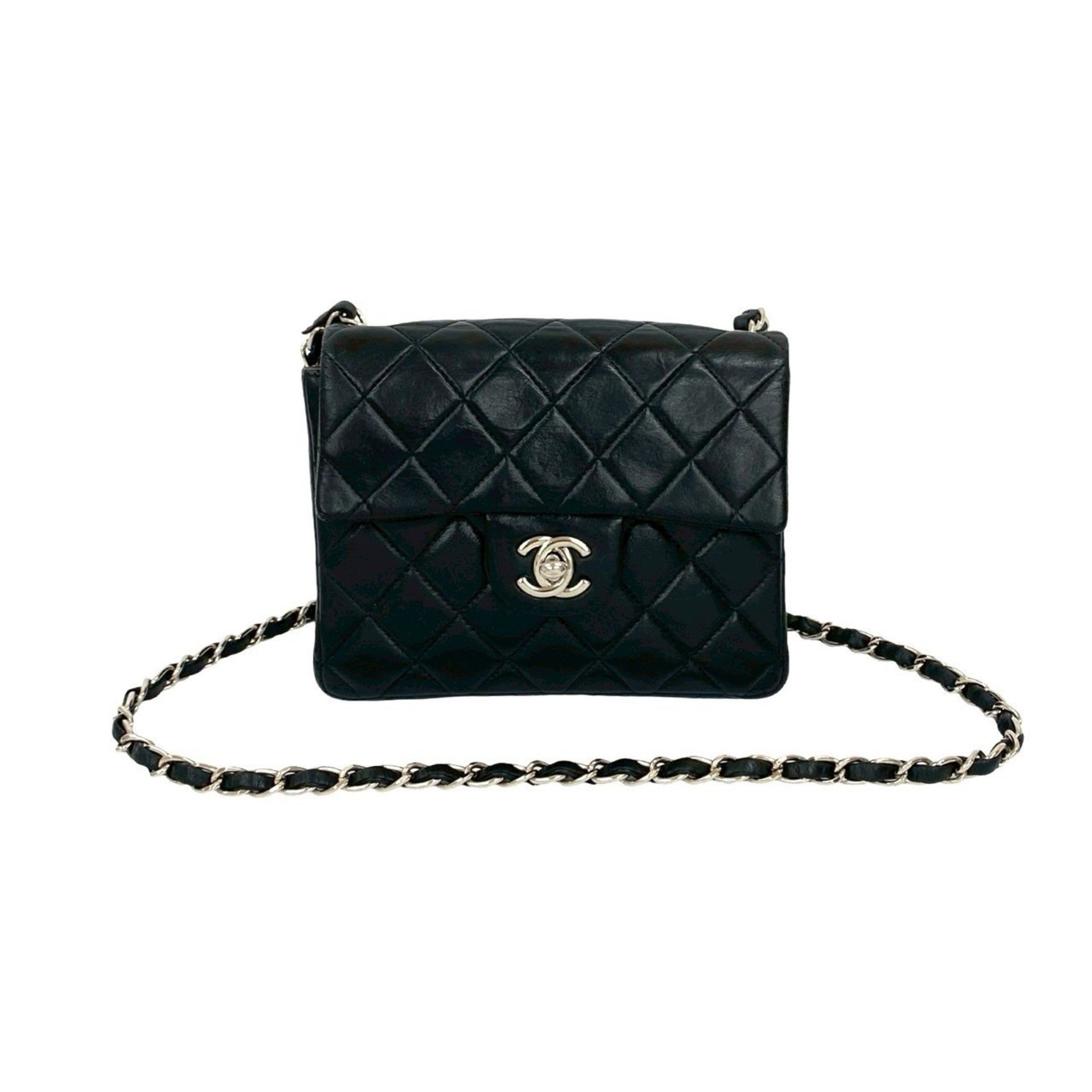 CHANEL Vintage Matelasse Coco Mark Lambskin Chain Shoulder Bag, Black, 163-2