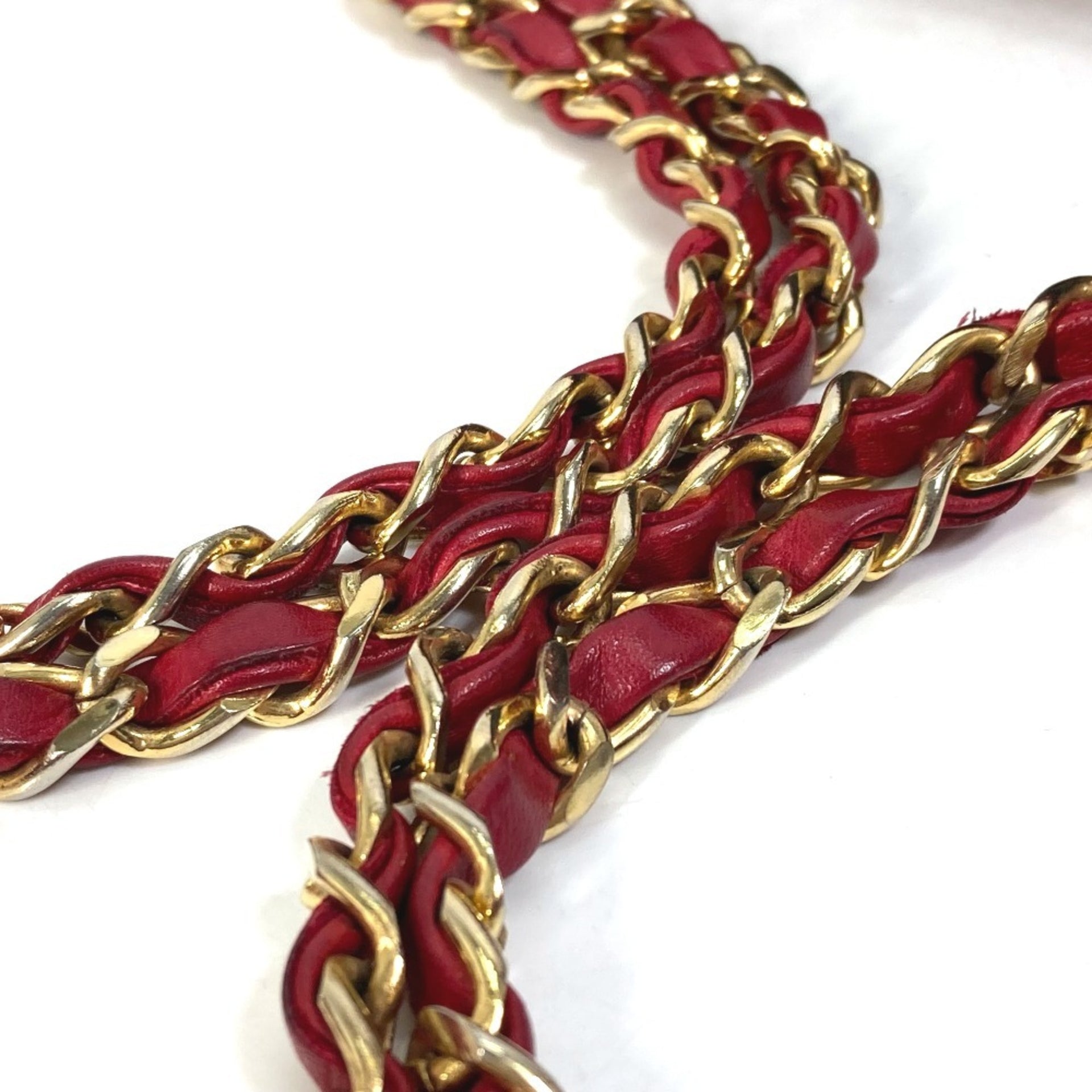 CHANEL Vintage Quilted Matelasse Double Chain Shoulder Bag in Leather, Women\'s, Red