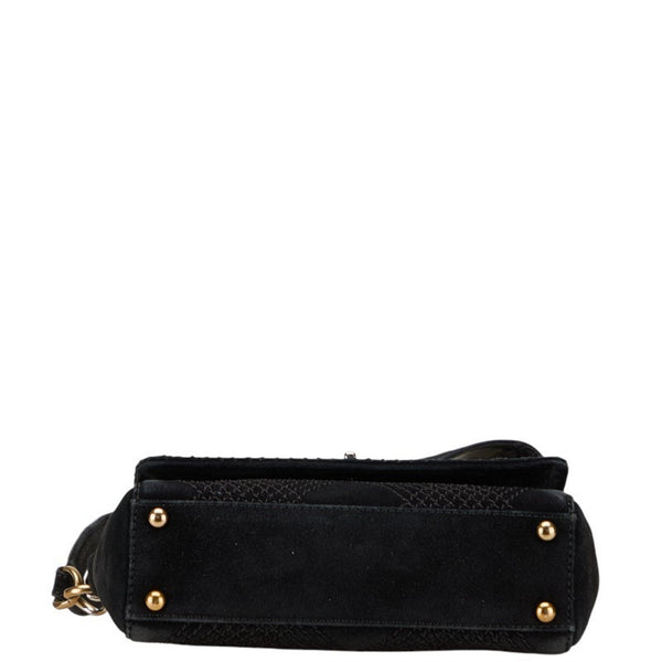 CHANEL Wild Stitch Coco Mark Shoulder Bag in Black Suede and Leather for Women