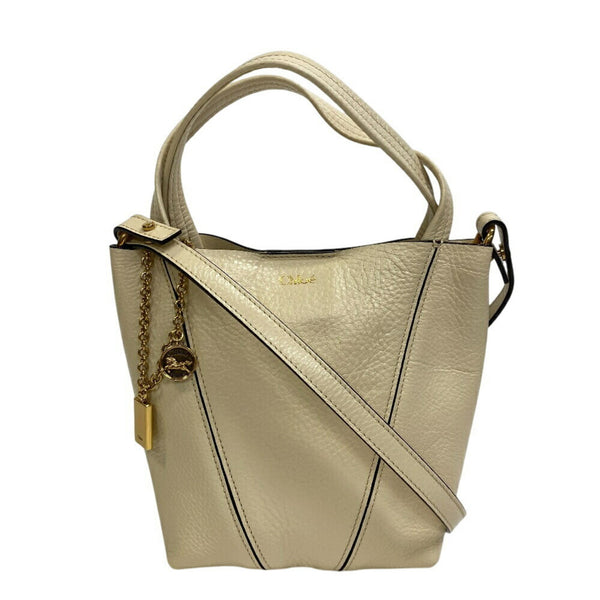 Chloé Chloe 2-way Hand Small Tote Spin Shoulder Bag Women\'s Beige