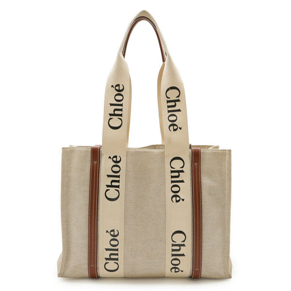 Chloé Chloe Woody Medium Tote/Shoulder Bag, Linen Canvas and Leather, Beige/Brown, CHC21VS383E66