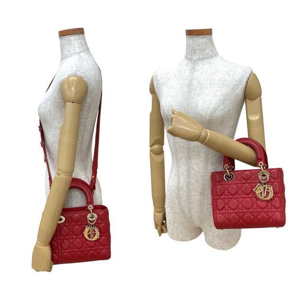 Christian Dior My Lady Leather 2-Way Handbag/Shoulder Bag, Red, 412-9