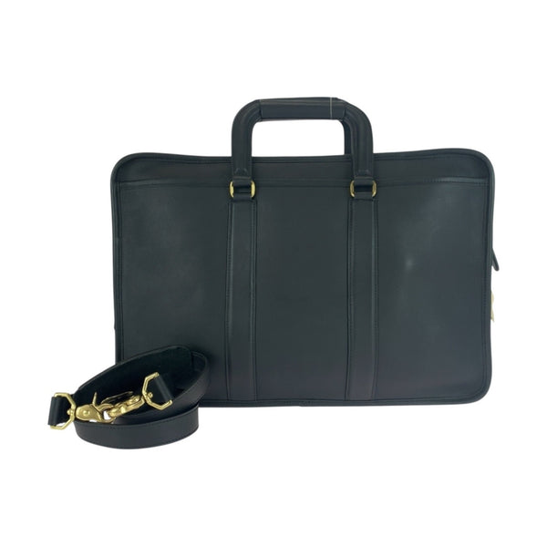 COACH Old Coach 5296 Black Leather Shoulder Bag with Gold Hardware, 2-Way Handbag for Women