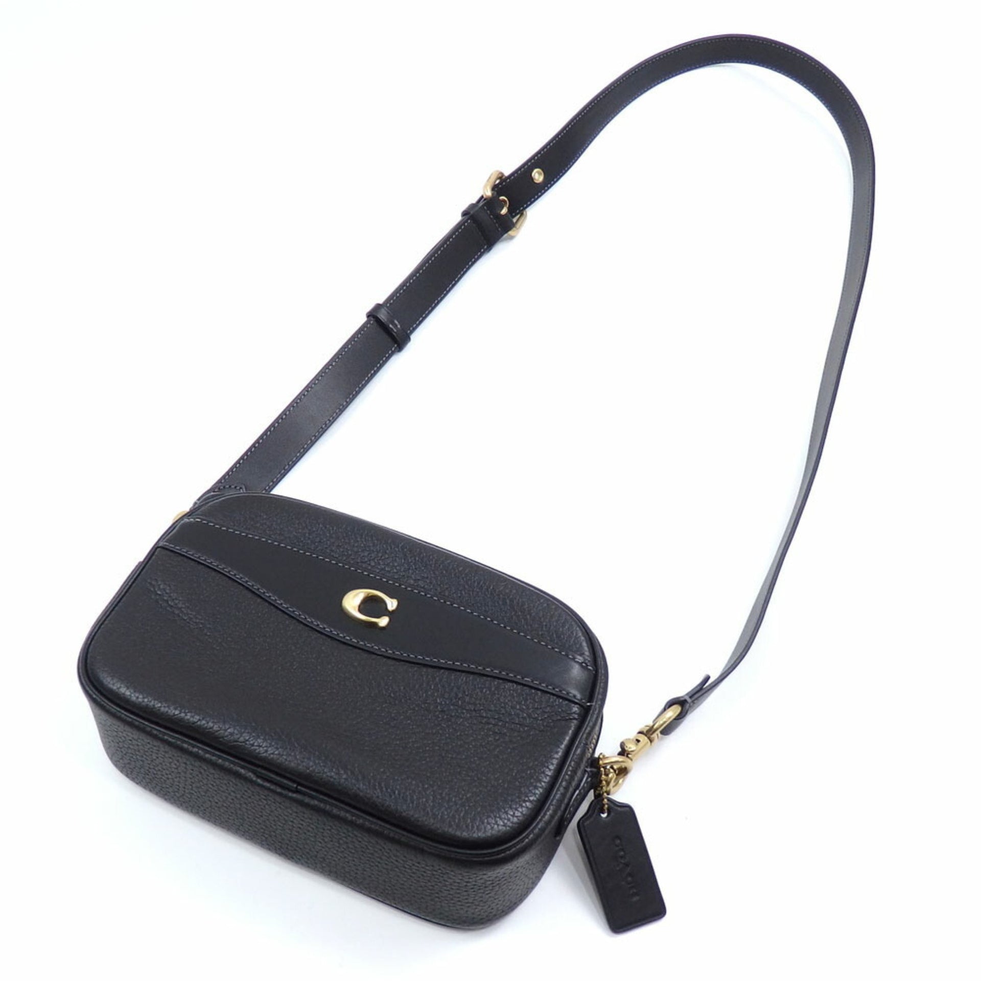 Coach Shoulder Bag, Camera Women\'s, Black, Soft Pebble Leather, Refined Calf CC386