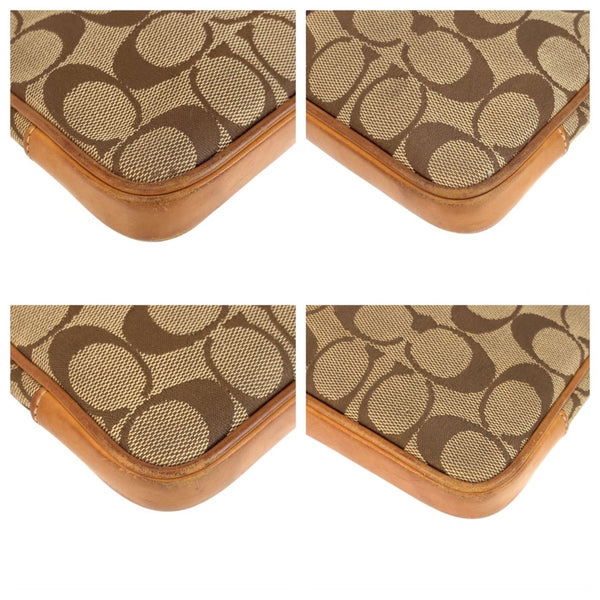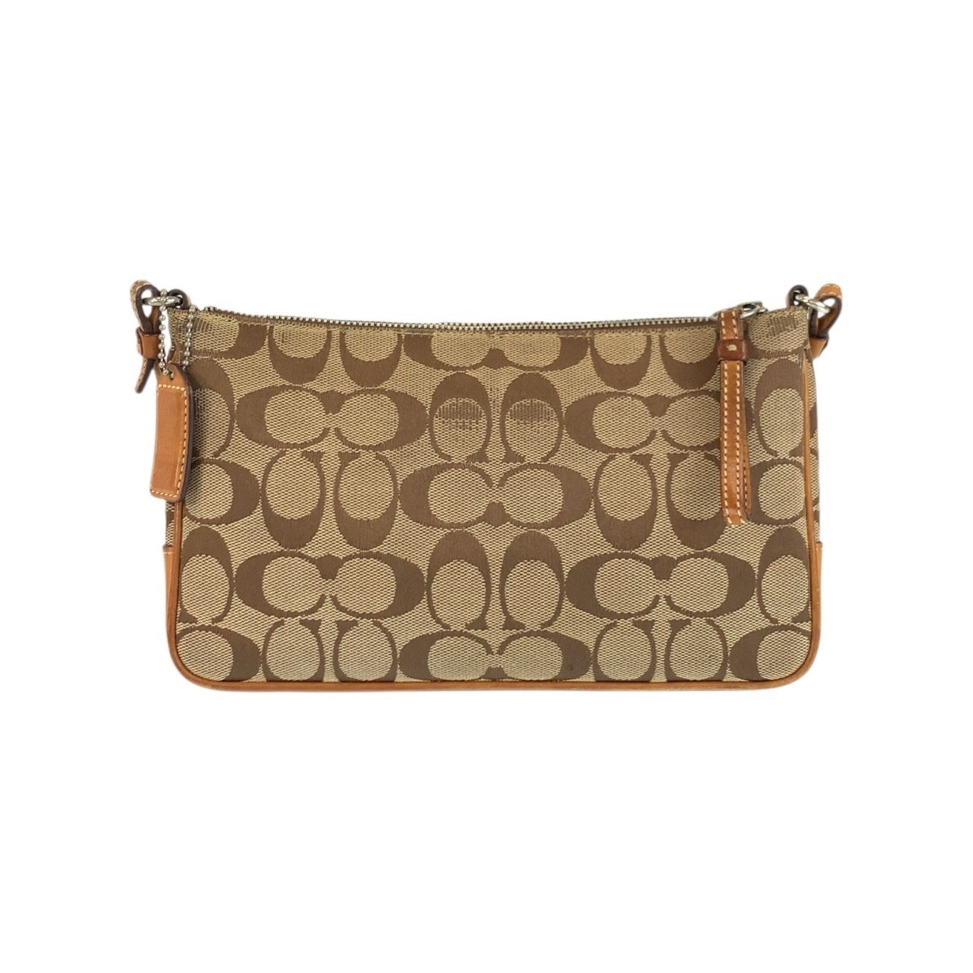 COACH Signature Slim Demi Zip Beige Camel Silver Hardware Canvas Leather 6338 Shoulder Bag Pochette Women\'s