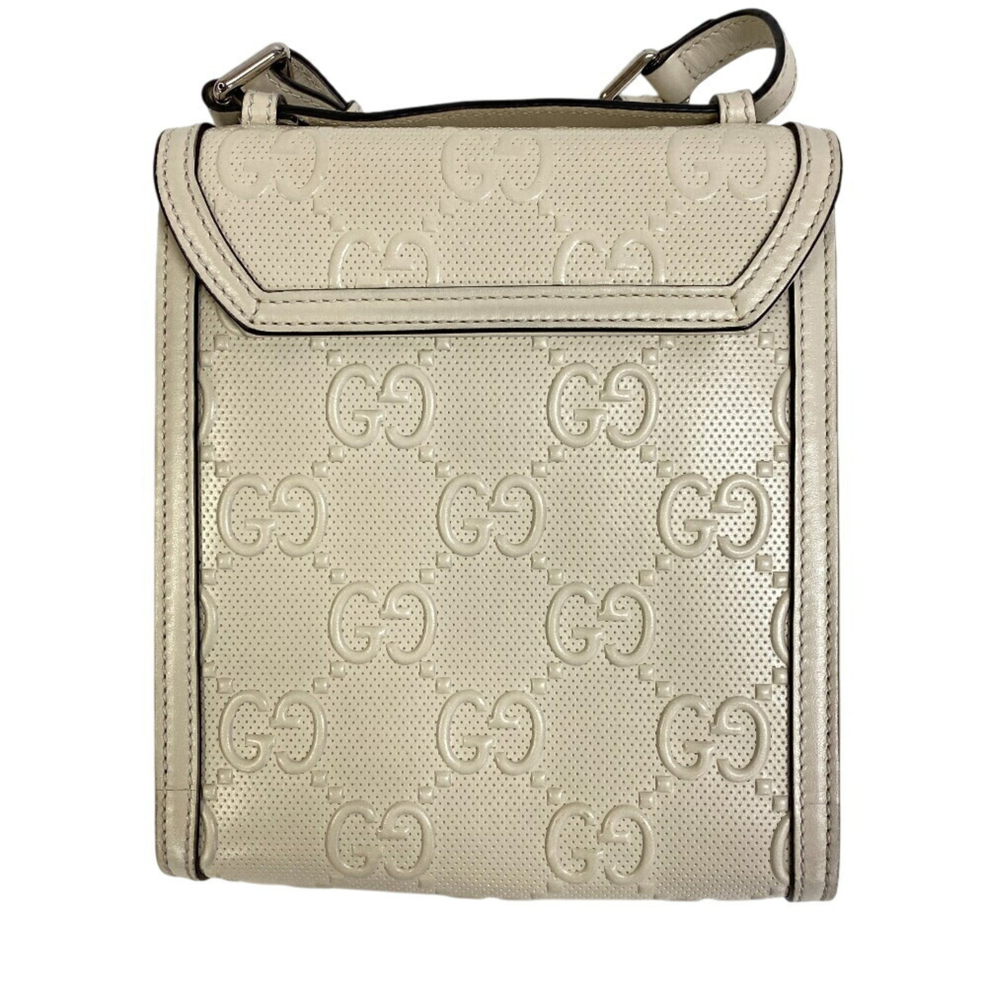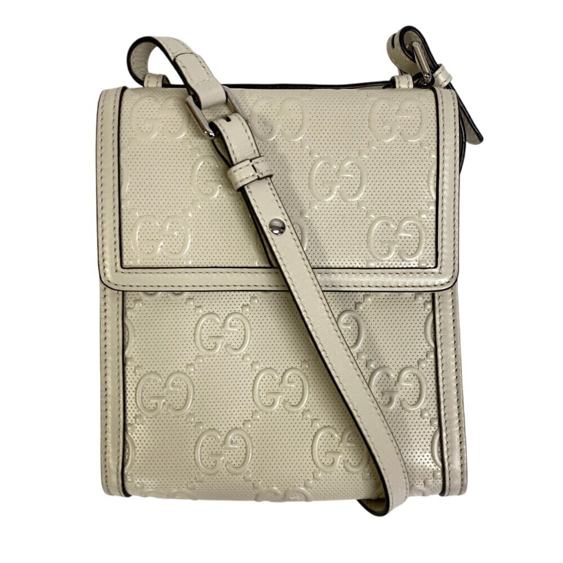 GUCCI 625782 GG Embossed Shoulder Bag, Women\'s, White, Unisex
