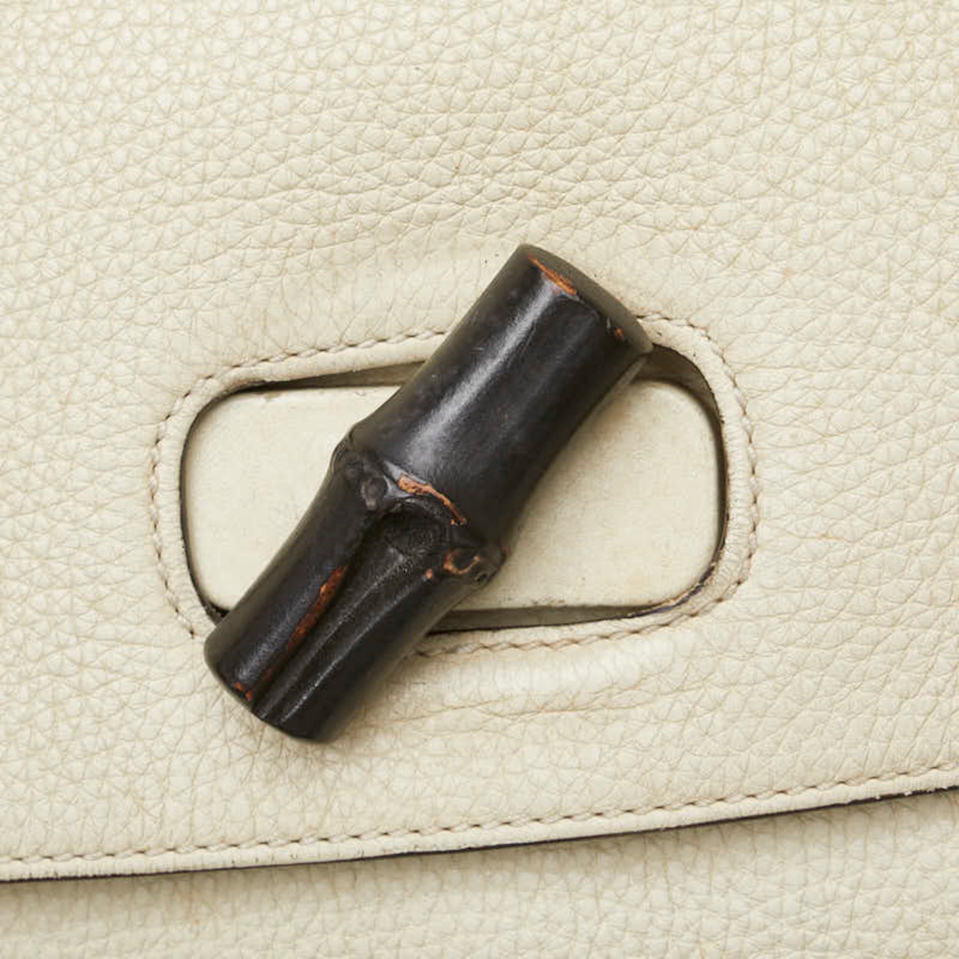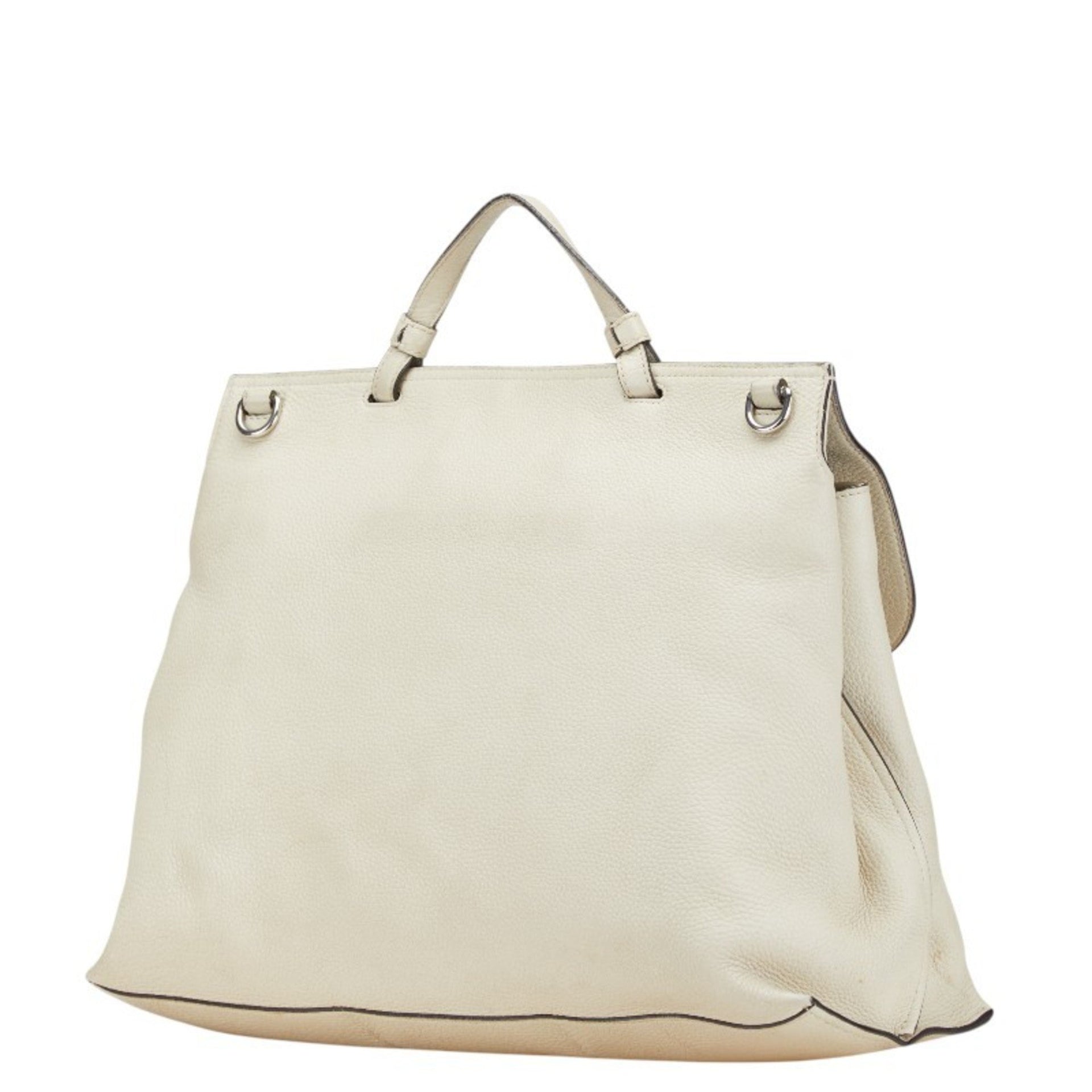 Gucci Bamboo Daily Tote/Shoulder Bag, 2-Way, 370830, White Leather, Women\'s