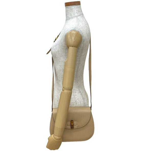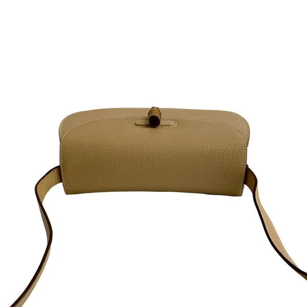 GUCCI Old Gucci Bamboo Turnlock Leather Shoulder Bag/Pochette Beige 96-10