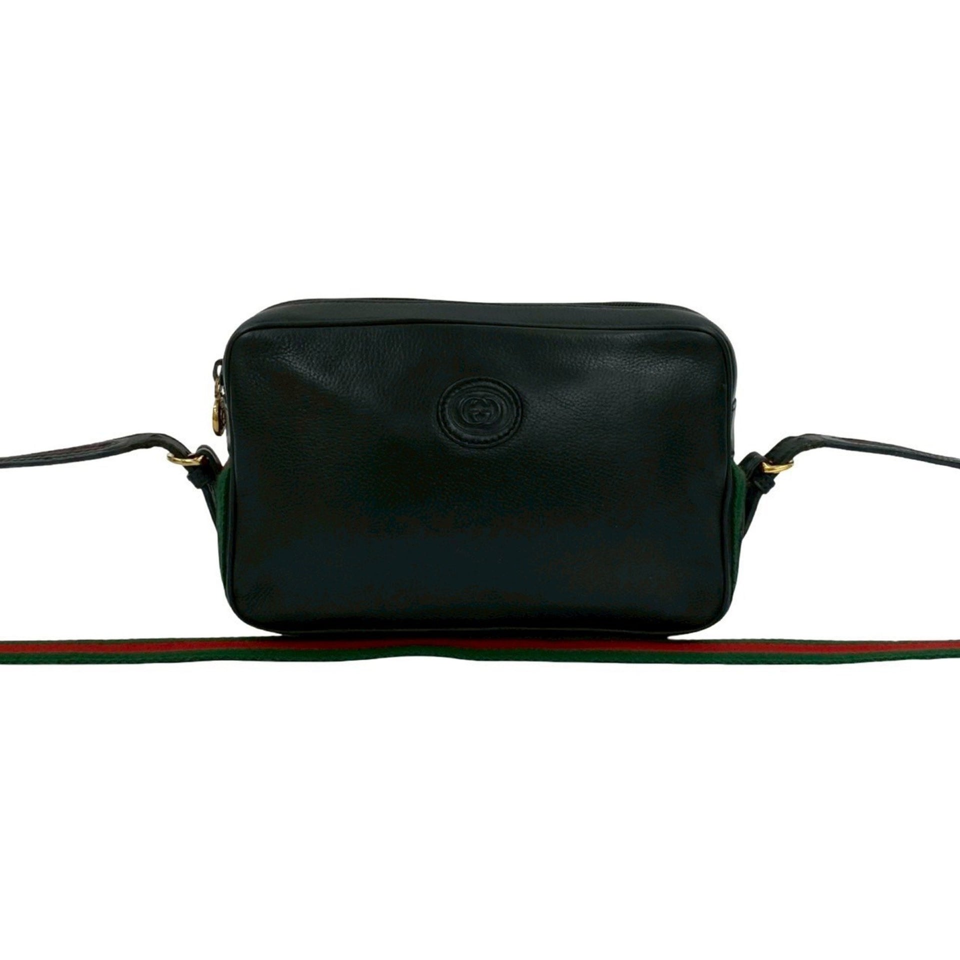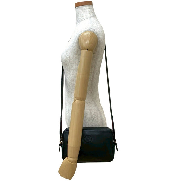 GUCCI Old Gucci Sherry Line GG Logo Leather Genuine Shoulder Bag Pochette Black 19368