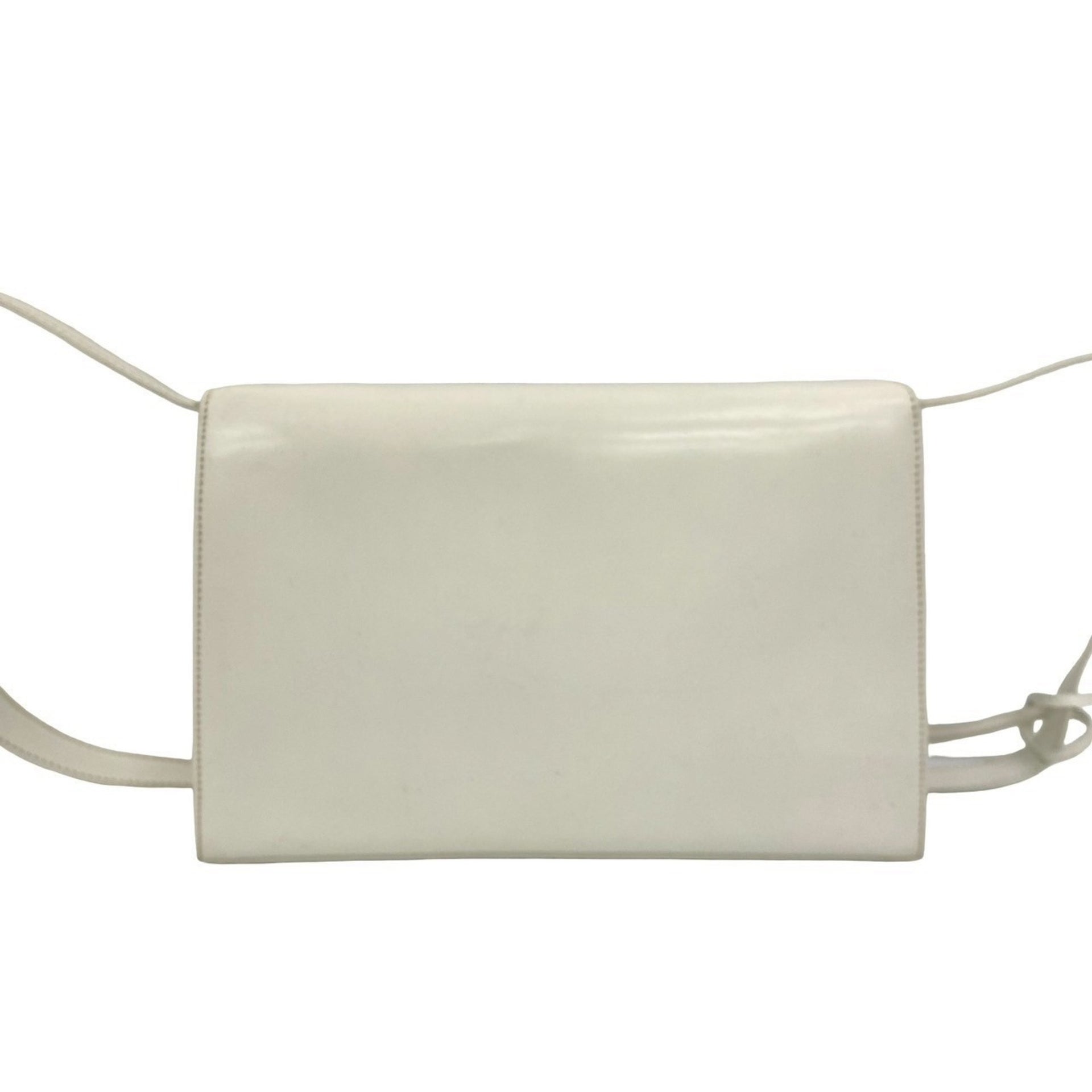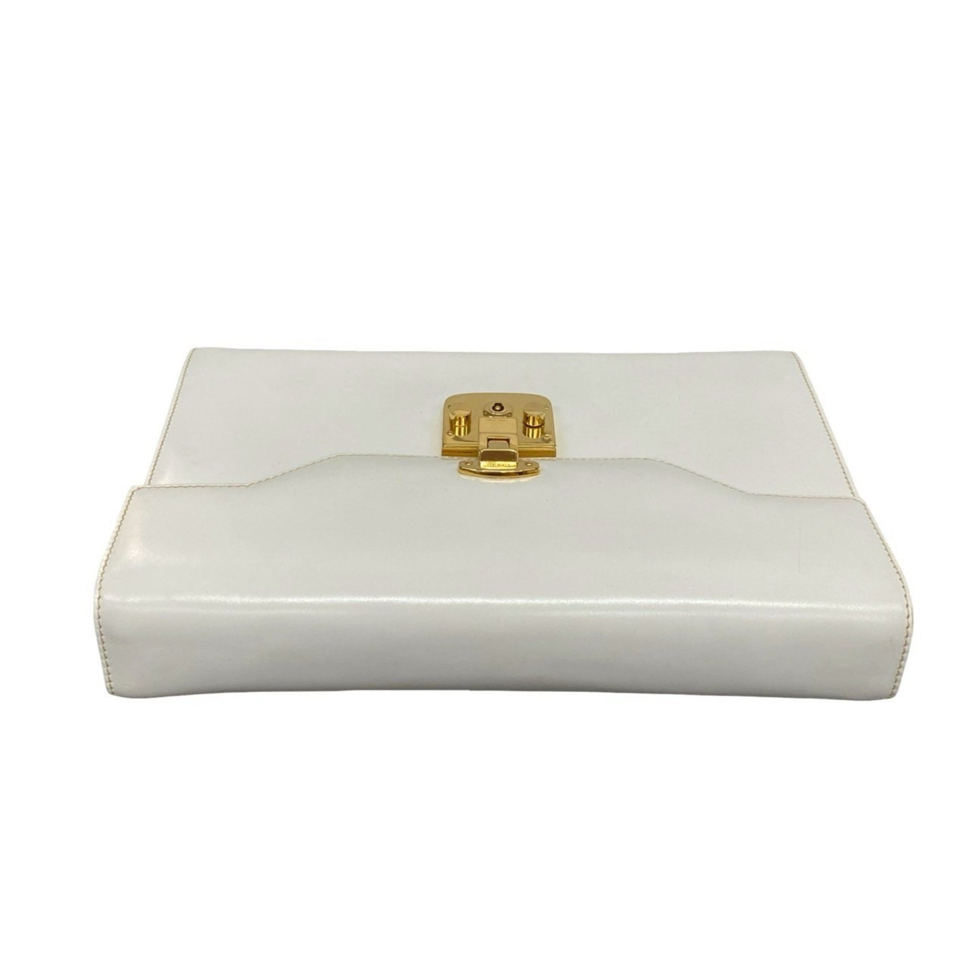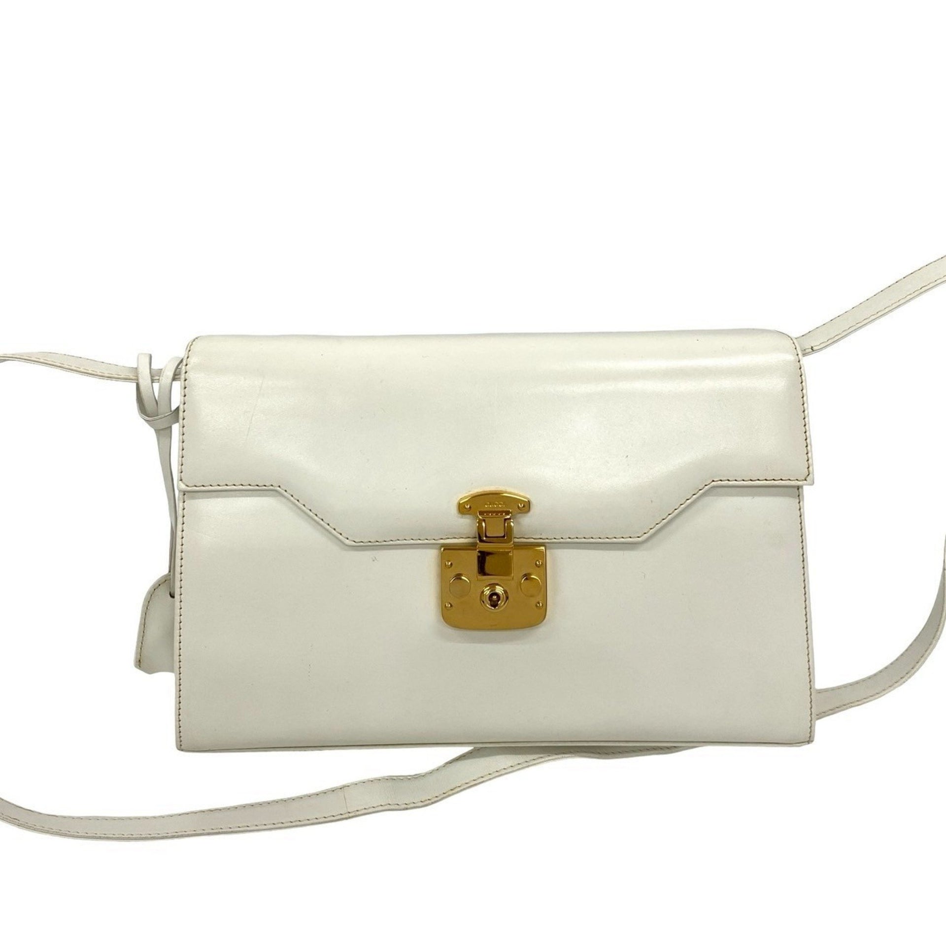 GUCCI Old Gucci Vintage Ladylock Calf Leather Shoulder Bag/Pochette White 27489