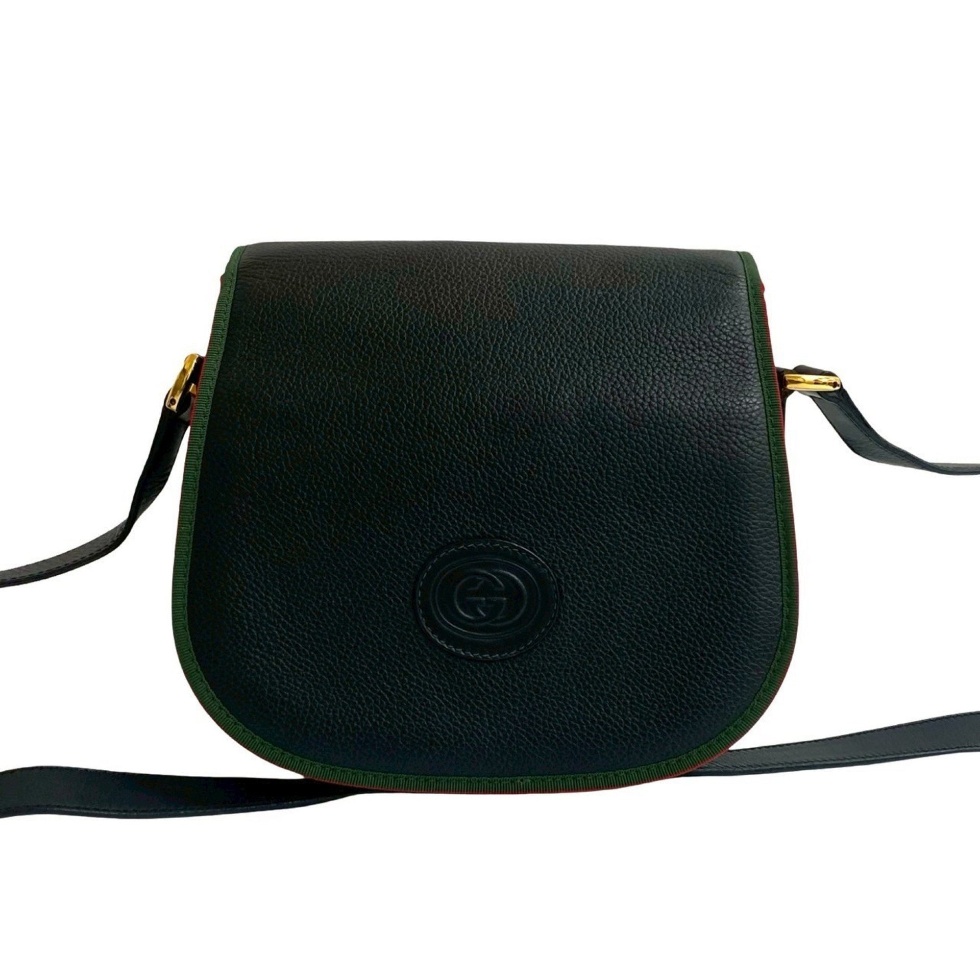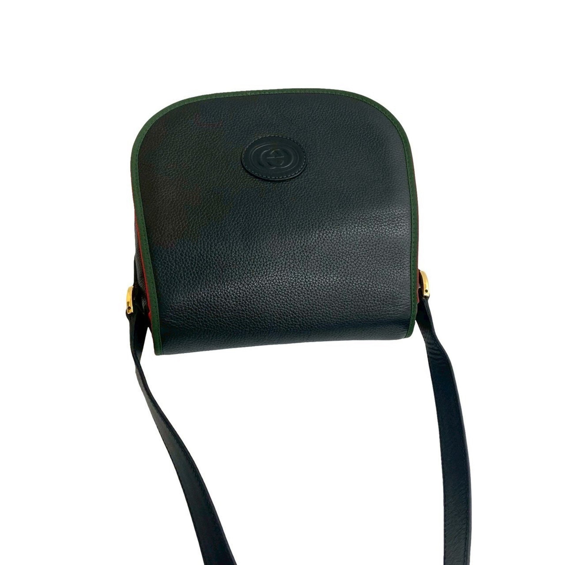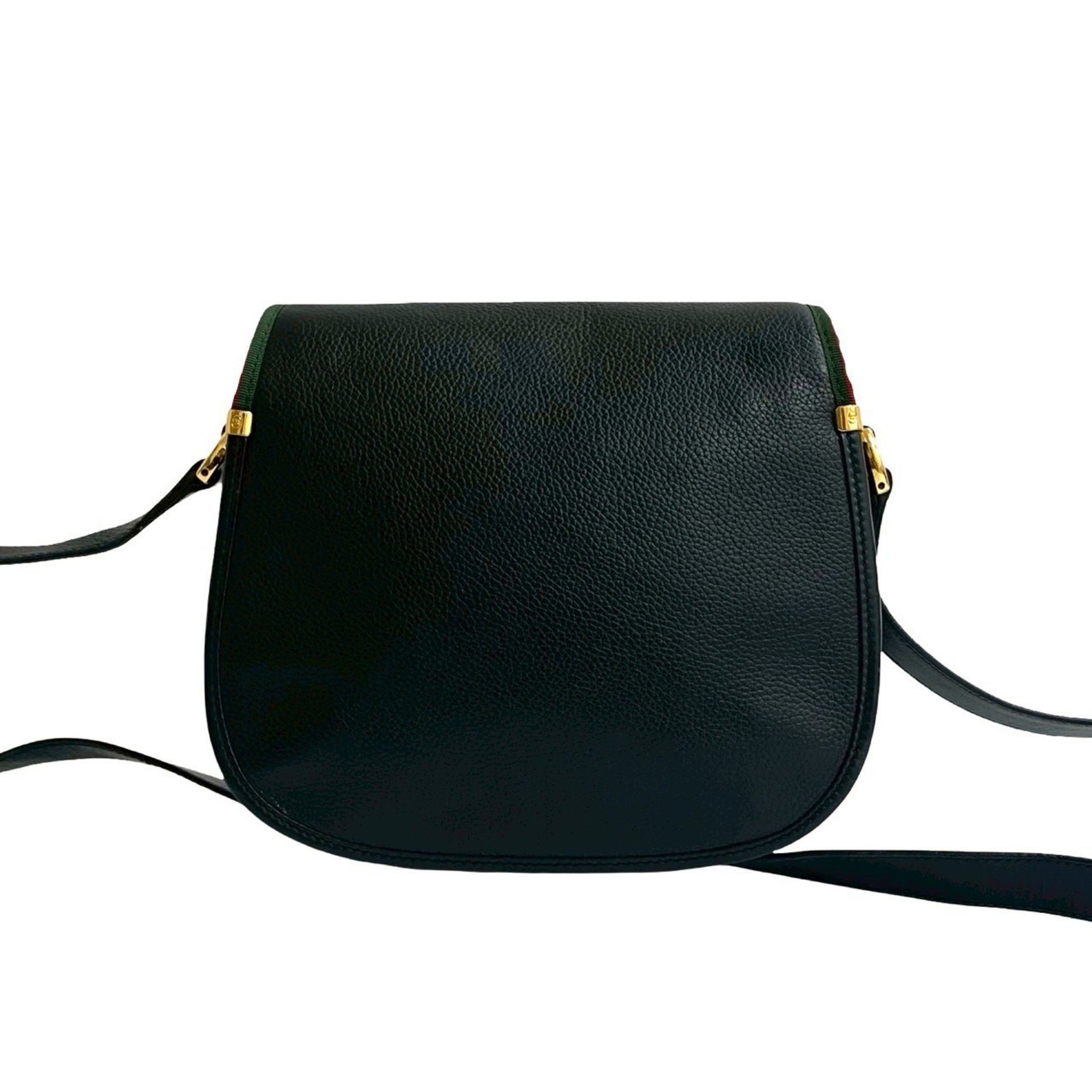 GUCCI Old Gucci Vintage Sherry Line GG Logo Embossed Leather Shoulder Bag Pochette Black 20471