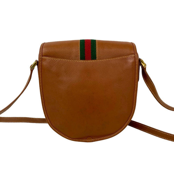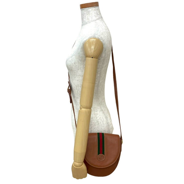 GUCCI Old Gucci Vintage Sherry Line GG Logo Leather Shoulder Bag Pochette Brown 824-9