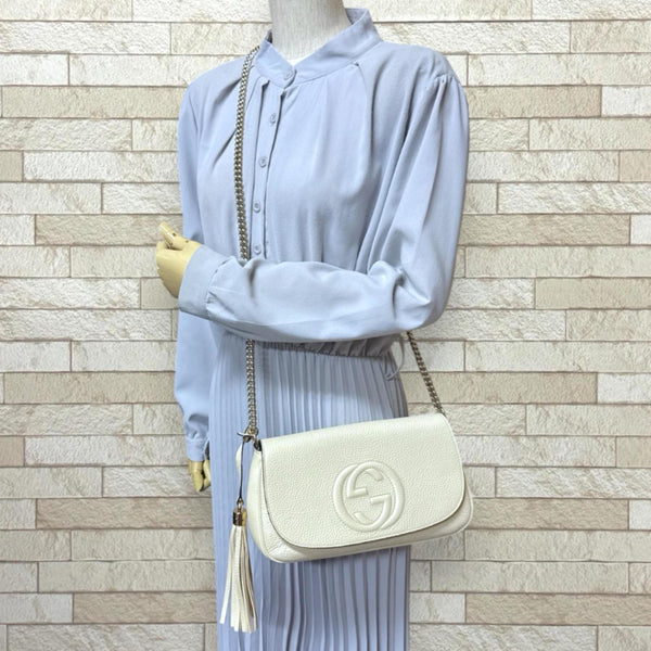 Gucci Soho Shoulder Bag, Leather, 536224, White, Women\'s, with Chain and Tassel