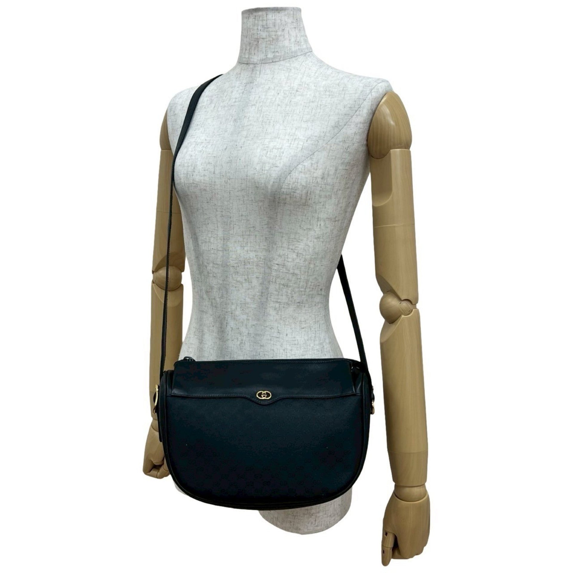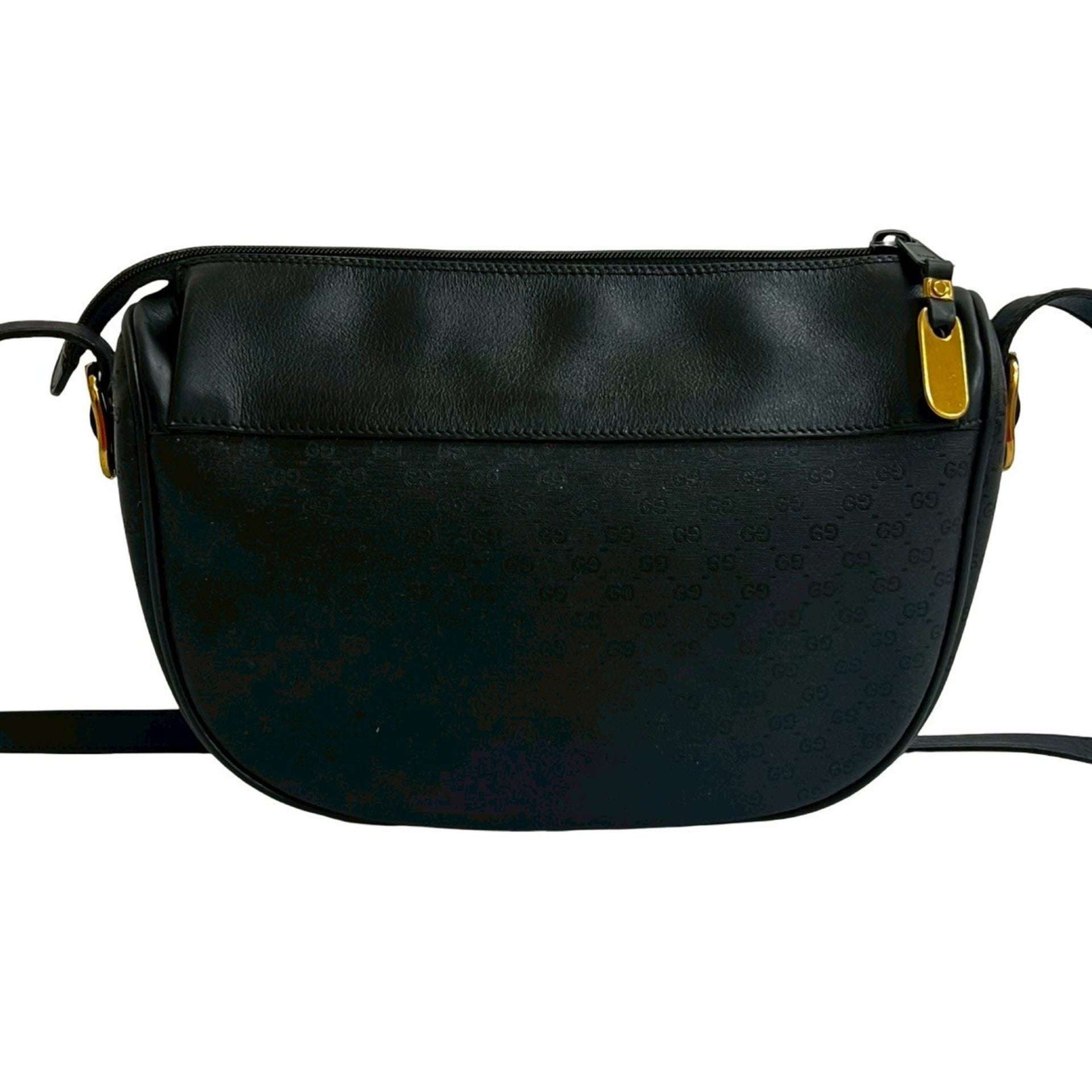 GUCCI Vintage Micro GG Logo Hardware Leather Shoulder Bag/Pochette in Black (40905)